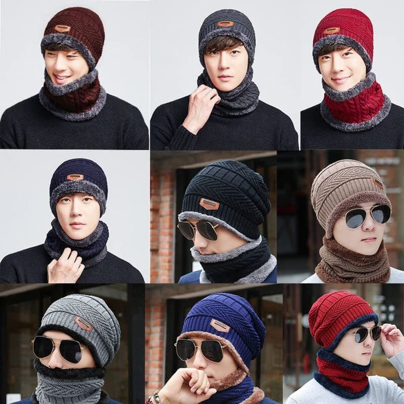 GINNIE & GINNIE CRAFTED WITH PASSION Winter Knit Neck Warmer Scarf and Set Skull Cap for Men Women/Winter Cap for Men