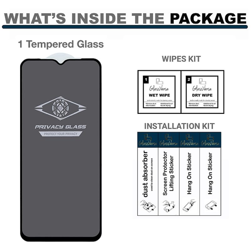 GlassVerse® Ultra Privacy Tempered Glass For Samsung Galaxy M05 (PACK OF 1) with Free Installation Kit. Edge To Edge. (In-Screen FingerPrint Lock will not work with the Privacy Guard) – 6.7 inch