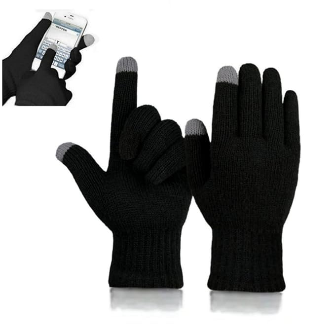 GloveTouch Woolen touch-screen hand gloves for winter Free size Unisex for Adults (Black) 1 Pair
