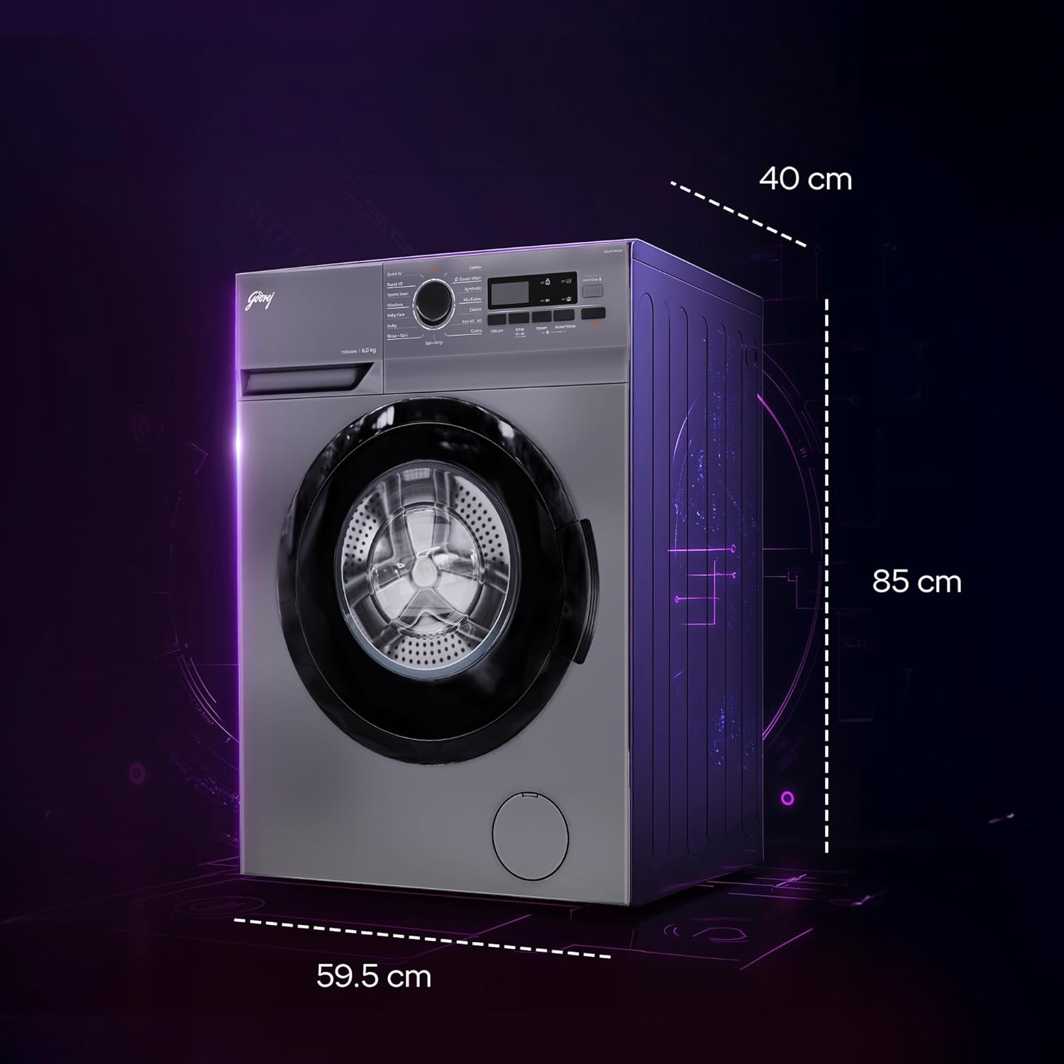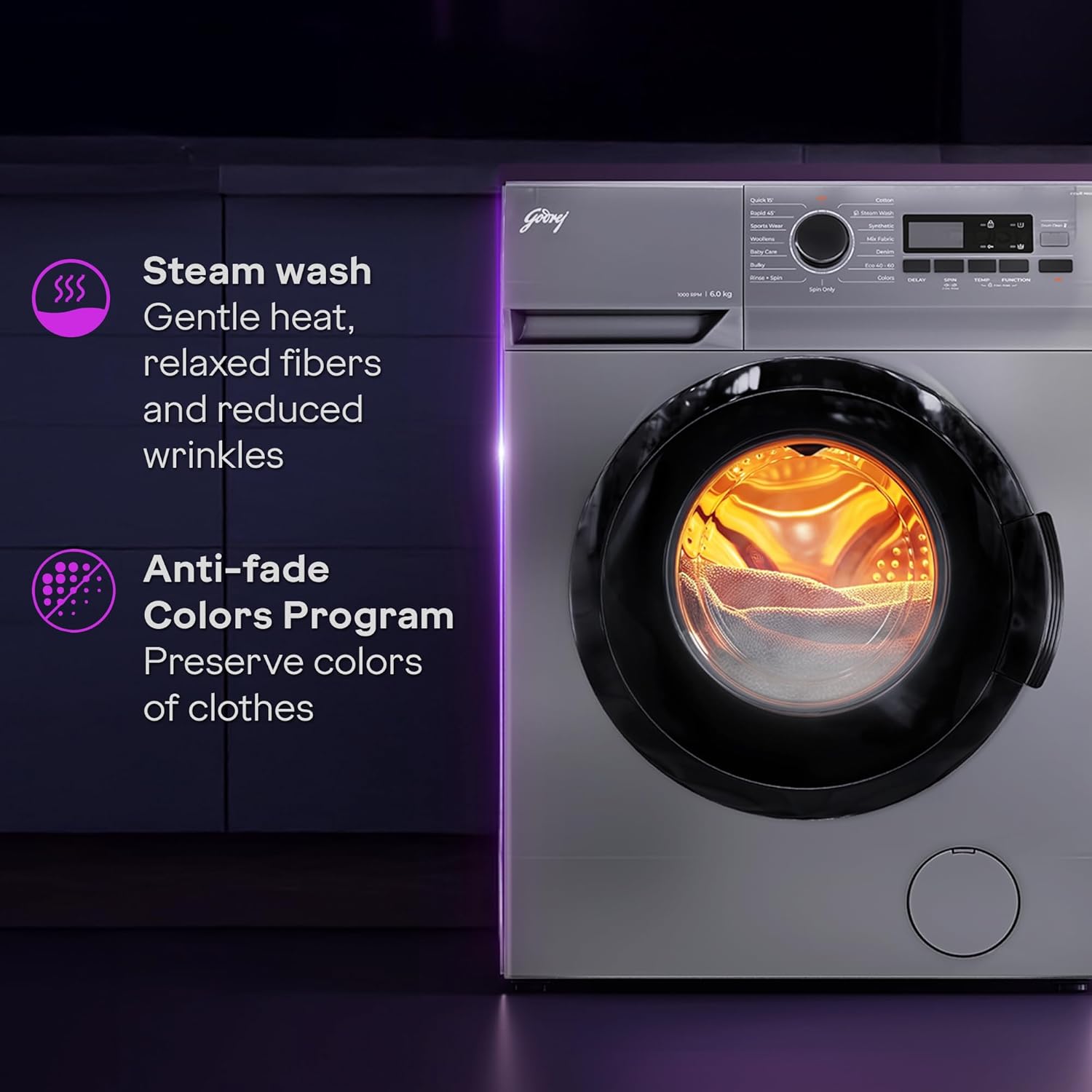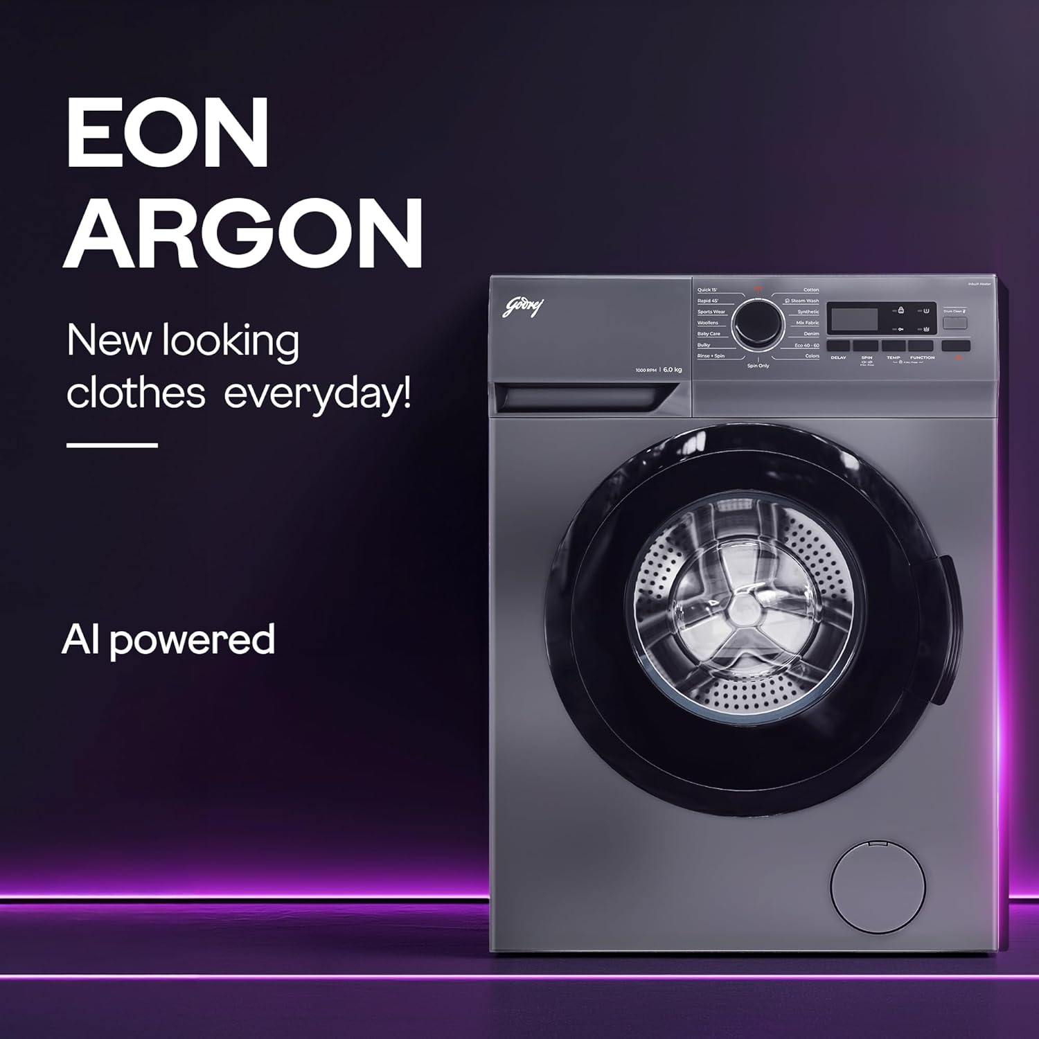 Godrej 6 Kg 5 Star AI Powered, Eco Wash, Steam Wash, Anti-Fade Color Programs, Pause The Wash Cycle, Child Lock, Fully Automatic Front Load Washing Machine (WFEON ARG 6010 5.0, Silver Stream)