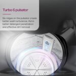 Drum / Pulsator Type : Pulsator: Turbo 6 Pulsator: Turbo 6 Pulsator has 6 ridges that create water waves inside the tub for better penetration of detergent and easy dirt removal ; Drum: Acu Wash Drum: Acu-wash drum has big and small evenly spaced contours that provide gentle scrubbing