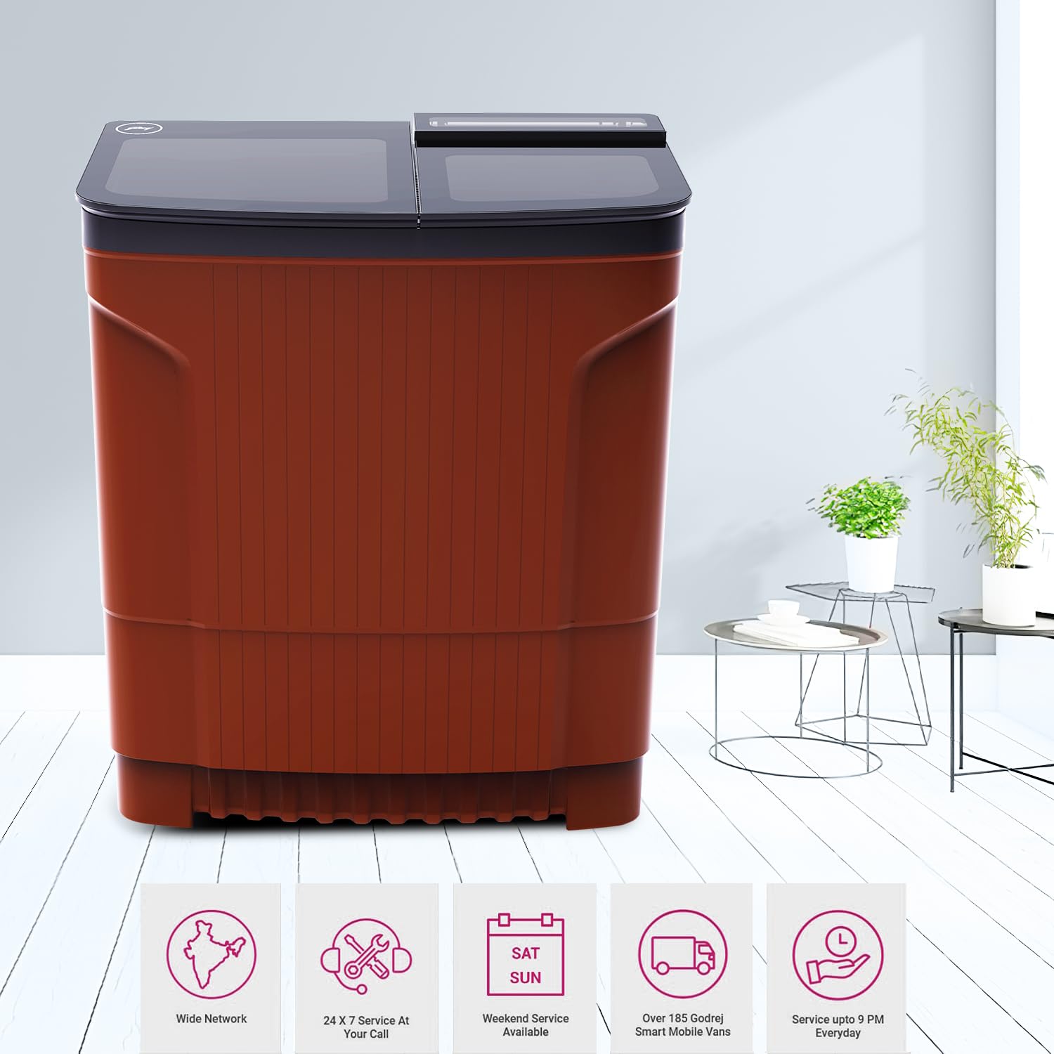 Godrej 8 Kg 5 Star With 460 PowerMax Wash Motor Semi-Automatic Top Load Boderless Design Washing Machine Appliance (WSEDGE ULT 80 5.0 DB2M CSRD, Crystal Red, With Toughened Glass Lid)