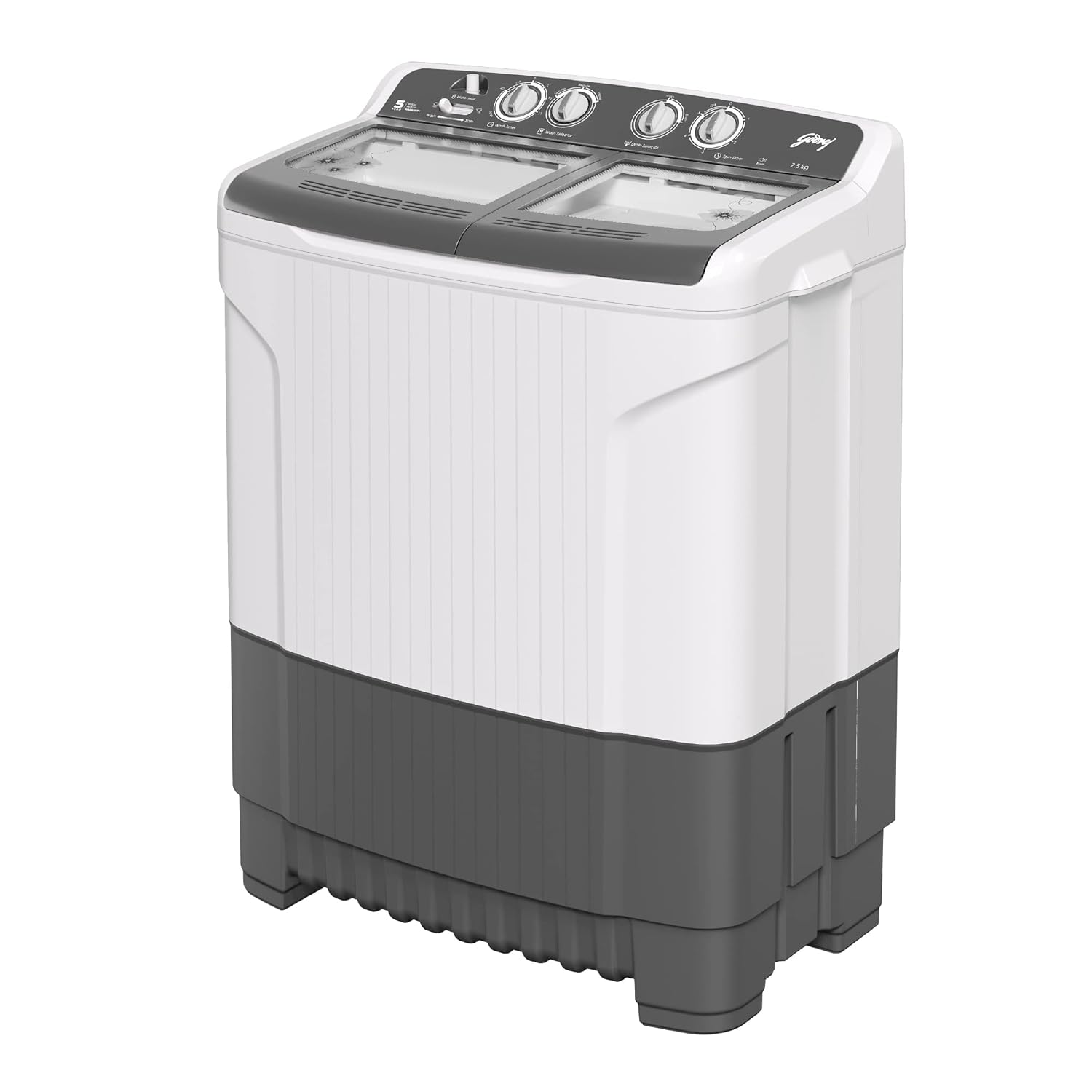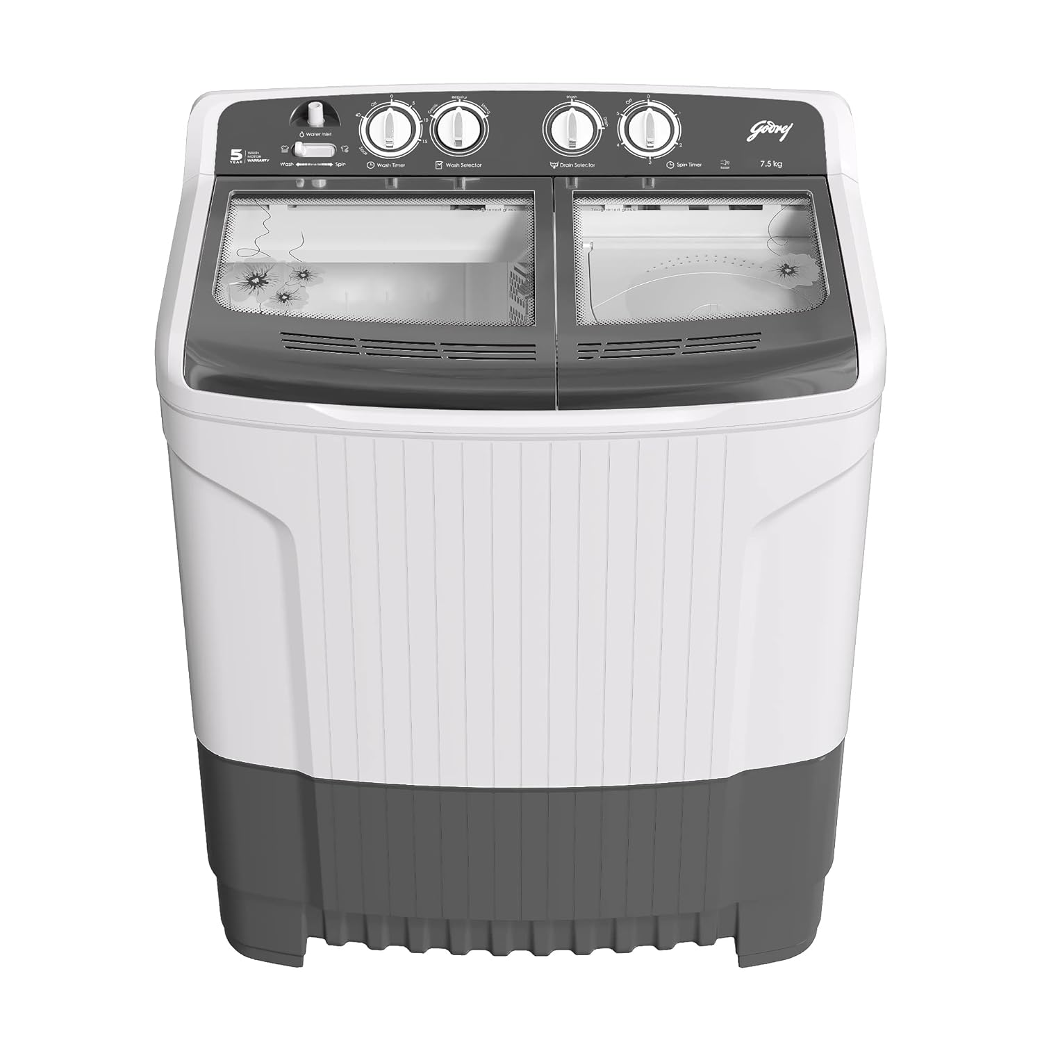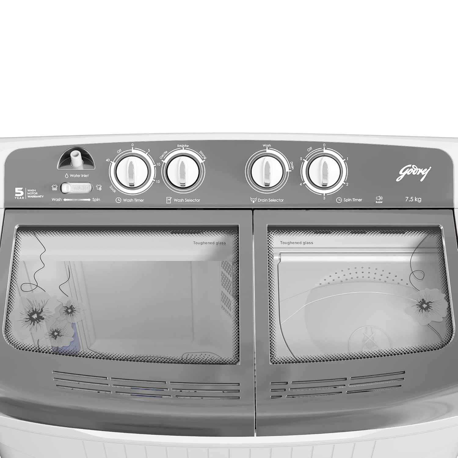 Godrej Edge 7.5 Kg 5 star Semi-Automatic Top Loading Washing Machine Appliance (WSEDGE 75 5.0 TB3 M STGR, Satin Grey, Toughened glass lids)