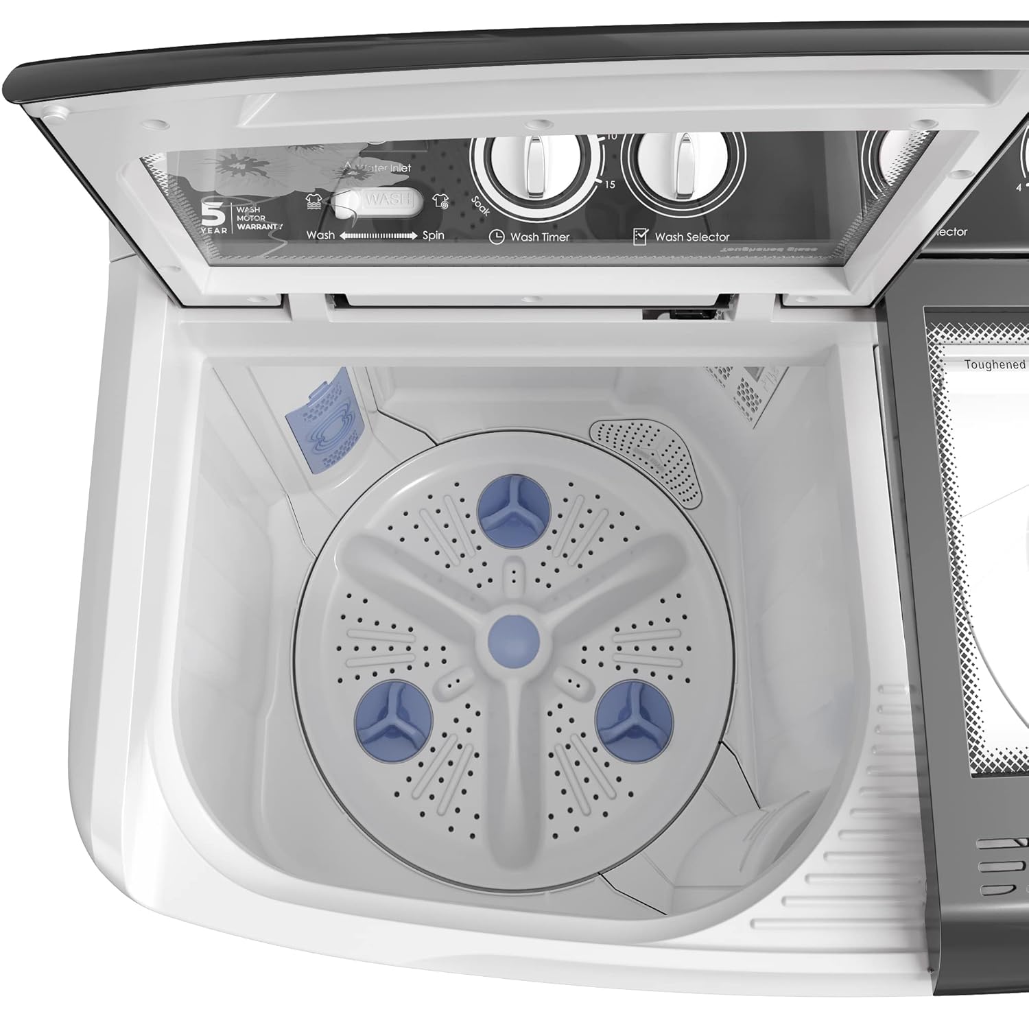 Tri-Roto Scrub Pulsator: The pulsator couples 3 ridges and 3 mini-pulsators to generate turbulence and scrubbing