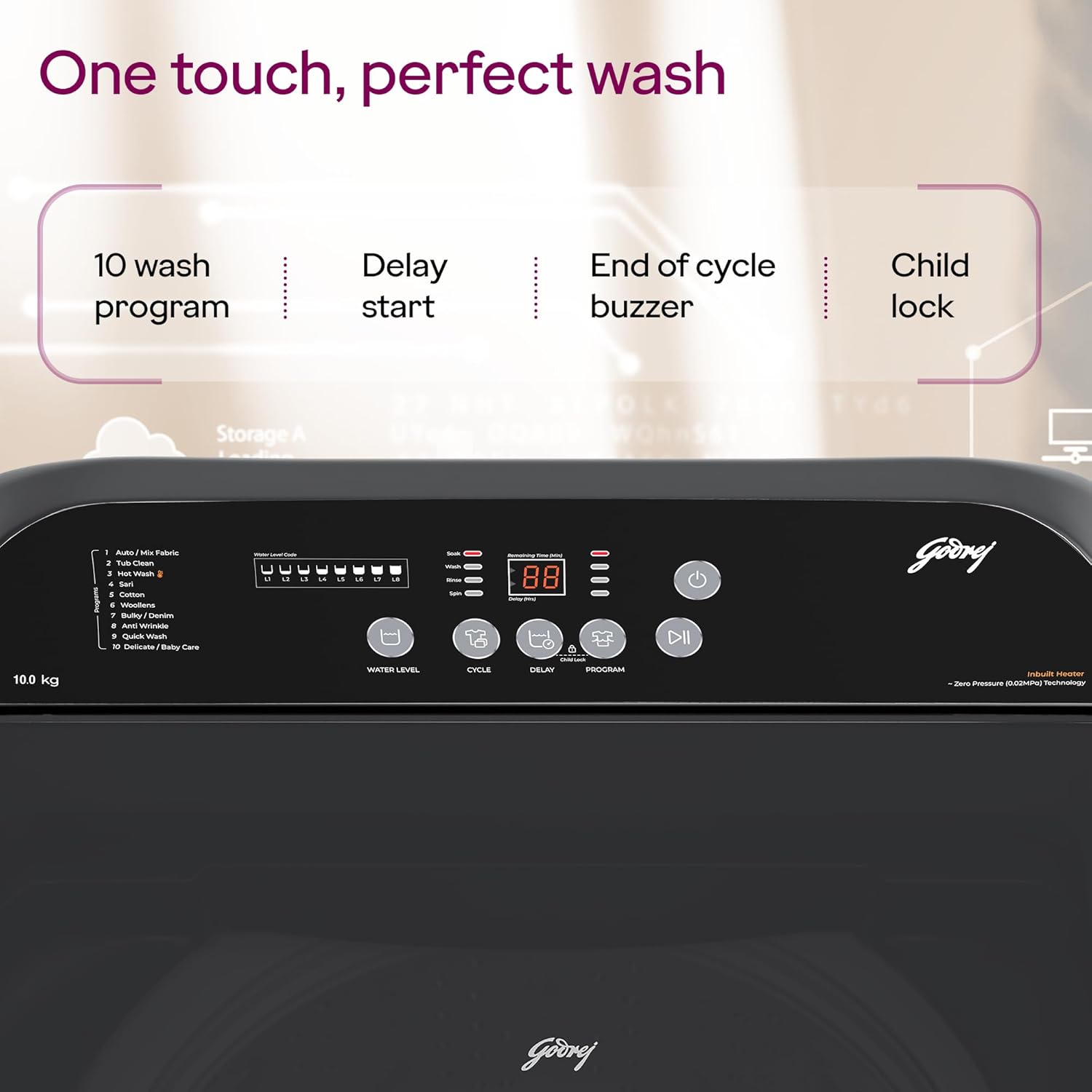 Godrej Smart Choice 10 Kg 5 Star, AI Tech, Inbuilt Heater, Fills Tub at ~0 Water Pressure, Steel Drum Fully Automatic Top Load Washing Machine (WTEON ADA 10 5.0 FEFH GLGR, Glacial Grey)