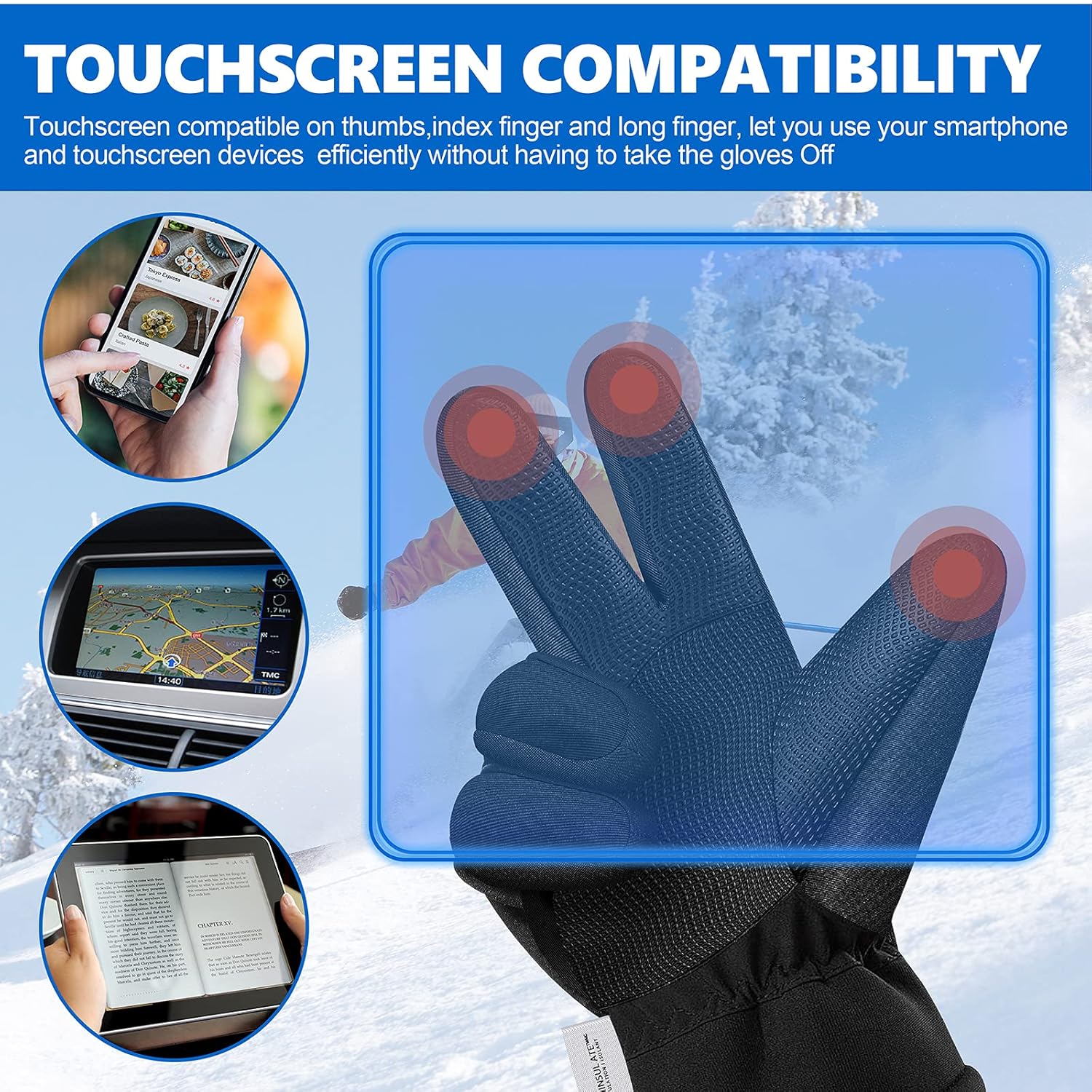 TOUCH SCREEN FINGER: This hand gloves for winter index part is using conductive PU leather, you can scroll your smartphone screen or use other electronic product wearing the gloves on.