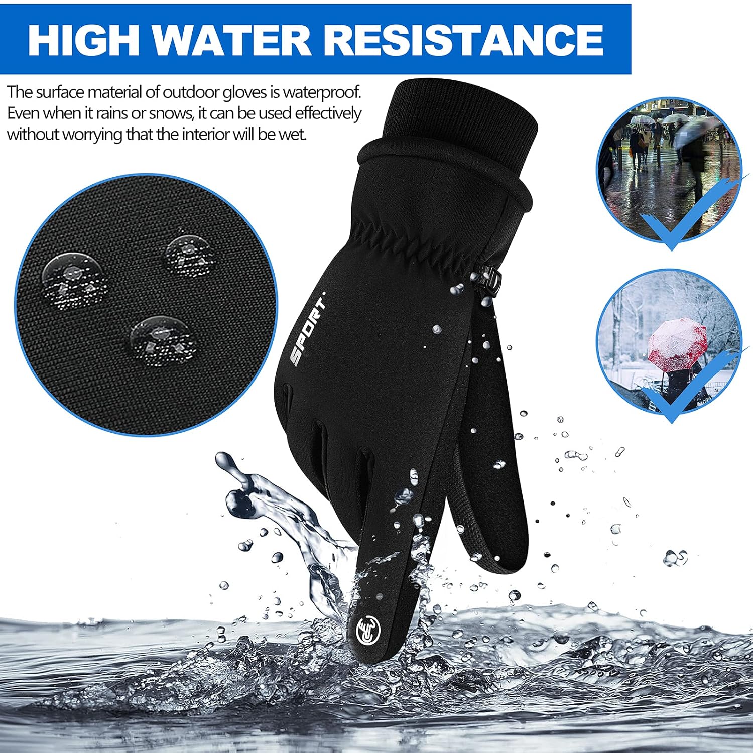 THREE LAYER DESIGNED WARM GLOVES: Three layered warm glove. This gloves for women and men winter wear made with exterior fabric applies waterproof fabric, even though for rainy days, this is the gloves you can take for outdoor, easily wipe to clean, no water stain left. The inner layer is made of thermal fabric, matching with the fleece lining warm your hands in cold weather, preventing frozen finger and keeping flexibility of fingers in winter.