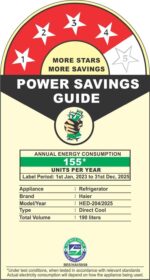 Energy Rating: 4 Star Refrigerator – High Energy Efficiency | Annual Energy Consumption: 155 KWH.