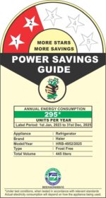 Energy Rating : 2 Star Energy Efficiency | Annual Energy Consumption: 295 Kilowatt Hours Per Year