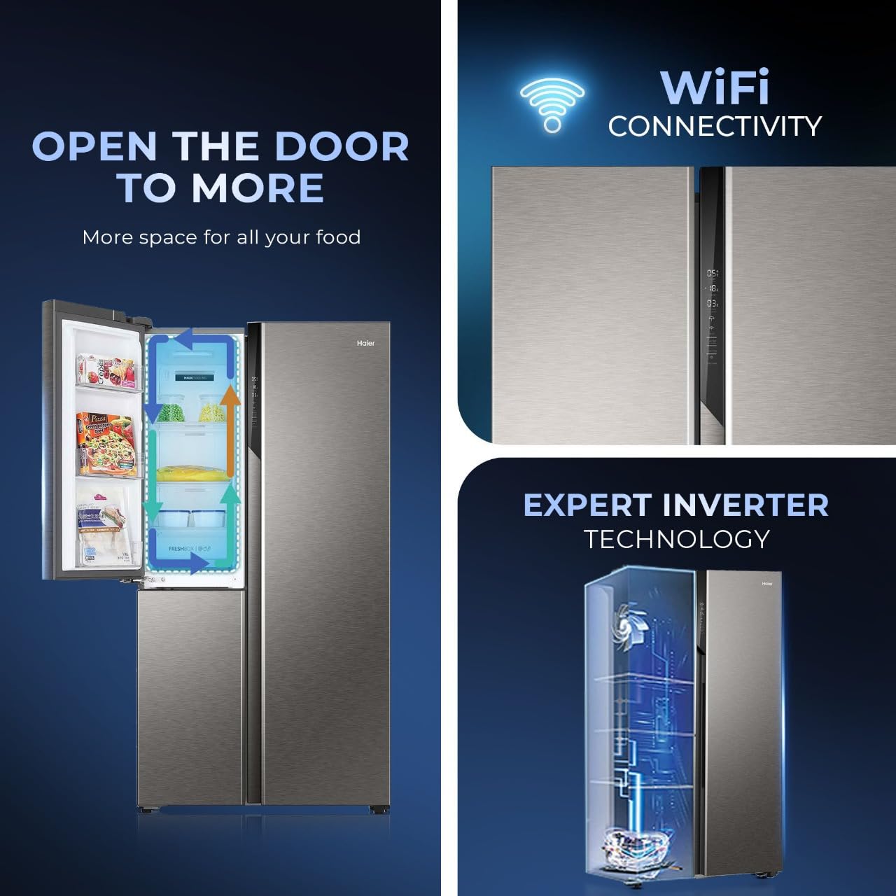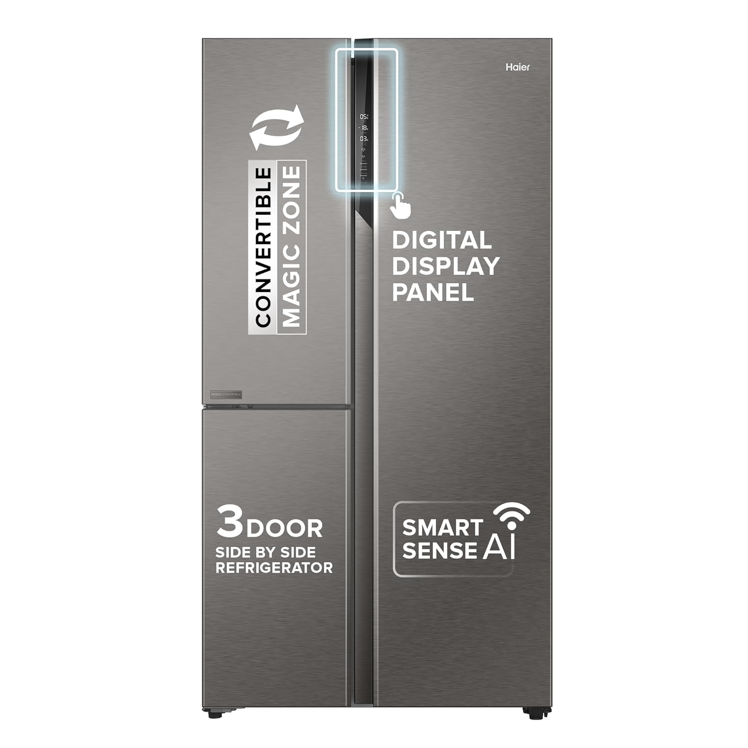 Haier 598L 3 Star 3-Door Side by Side Frost Free Refrigerator|Convertible|Wi-Fi|Expert Inverter Compressor|Digital Display Panel|Triple Twist Ice Maker|Deo Fresh Technology (HRT-683ISU1, Inox Steel)