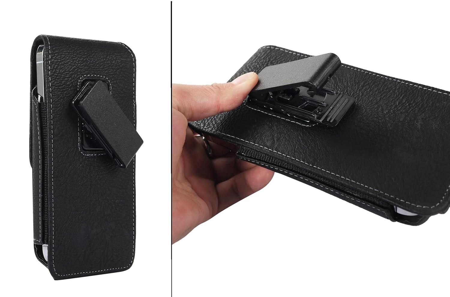 【Premium Quality】Universal cellphone holster is made of premium pu leather and soft microfiber inner lining, keep your device secure and protect from scratch, dirty, light rain splash.