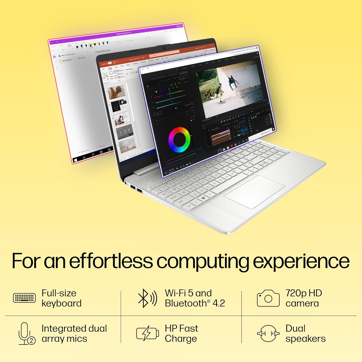 HP 15s, AMD Ryzen 5 5500U (8GB DDR4, 512GB SSD) FHD, Anti-Glare, 15.6”/39.6 cm, Win 11, Office 21, Silver, 1.69 kg, eq2144AU, AMD Radeon Graphics, HD Camera, Dual Speakers Laptop