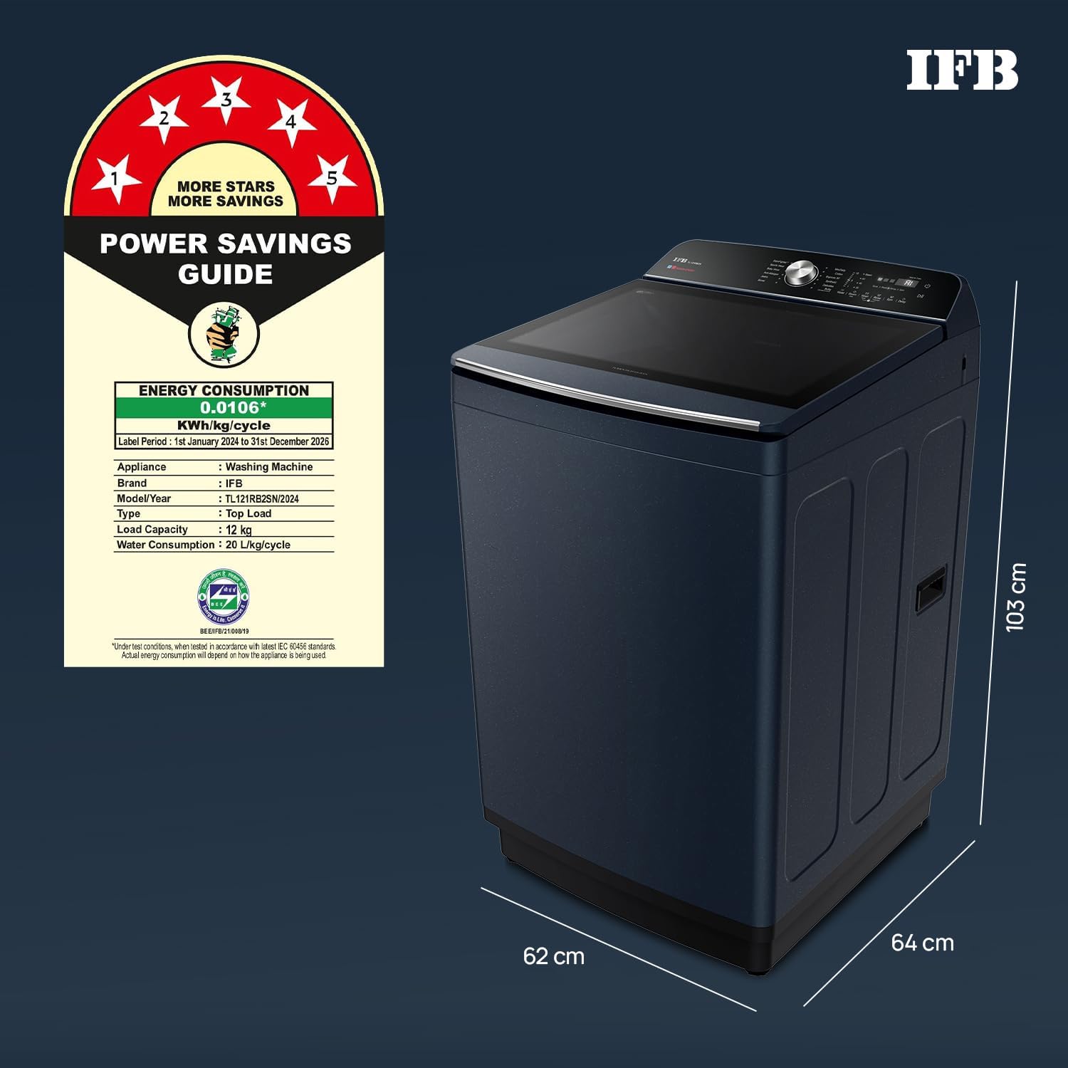 IFB 12 Kg 5 Star with DeepClean® Technology, AI Powered, Fully Automatic Top Load Washing Machine (2025 Model, TL121RB2SN, PowerSteam®, Inbuilt Heater, 5D Wash, Aqua Energie, Royal Blue)