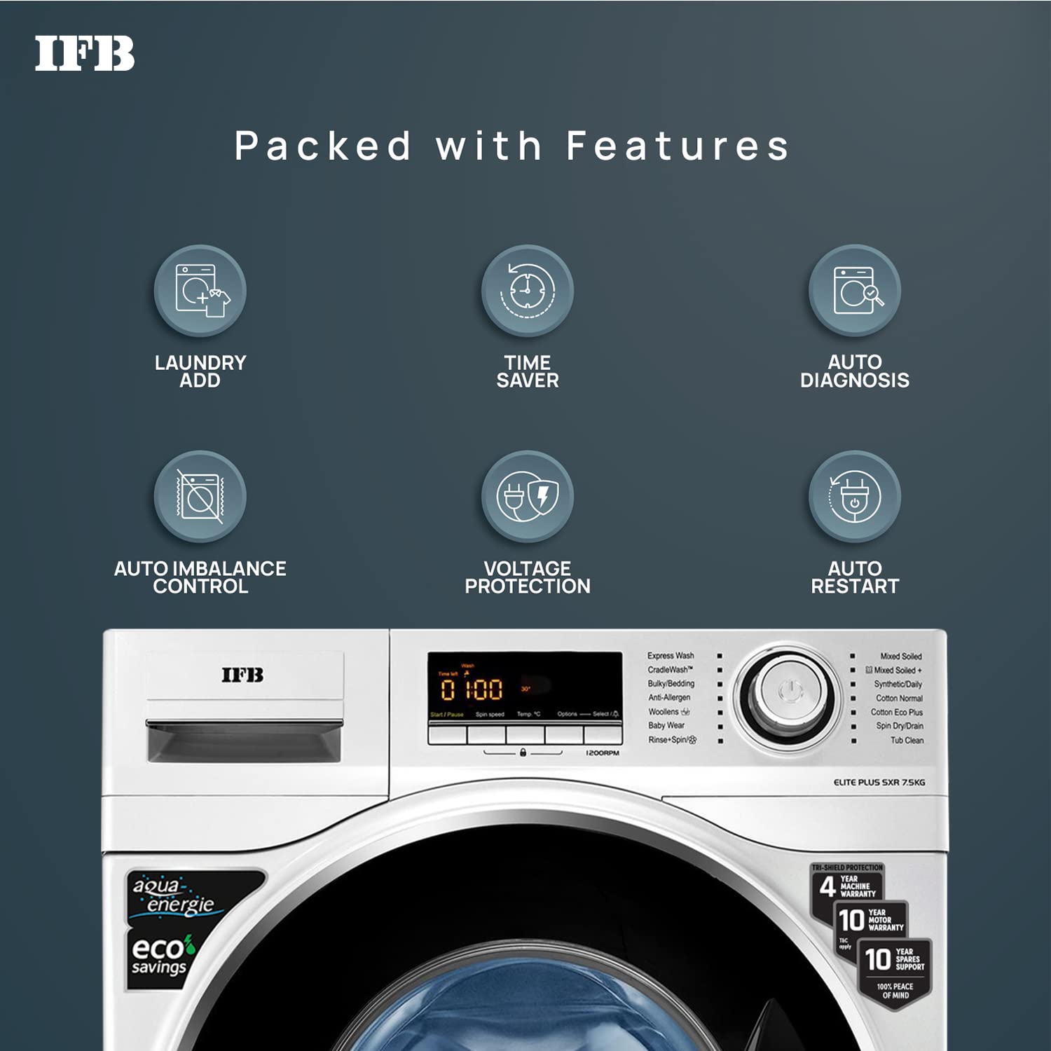 IFB 7.5 Kg 5 Star Fully-Automatic Front Loading Washing Machine (Elite Plus SXR, Silver, Cradle wash, 3D Wash technology)