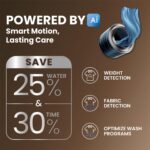 Powered by AI: Neural network-based algorithms automatically detect fabric type and load weight, optimizing water levels, wash actions, and cycle duration. This ensures better cleaning while reducing wear and tear on fabrics