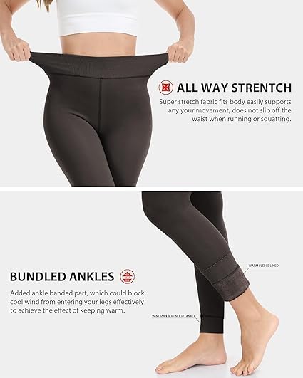 SHAPERX women’s thermal high waist fleece lined winter leggings tummy control Black Pack of 1