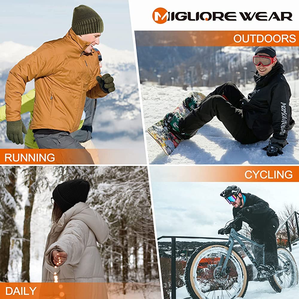 JAZAA Latest Stylish Winter Woolen Beanie Cap (Fur Inside) and Gloves & Shock Set for Men and Women Stretch Warm Winter Cap