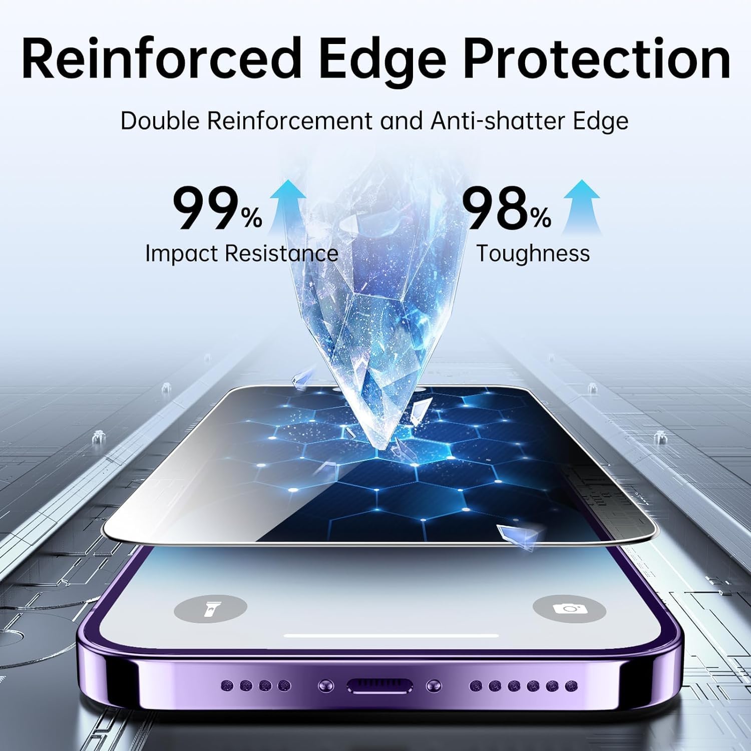 99.99% High-definition clear hydrophobic and oleophobic screen coating protects against sweat and oil residue from fingerprints.