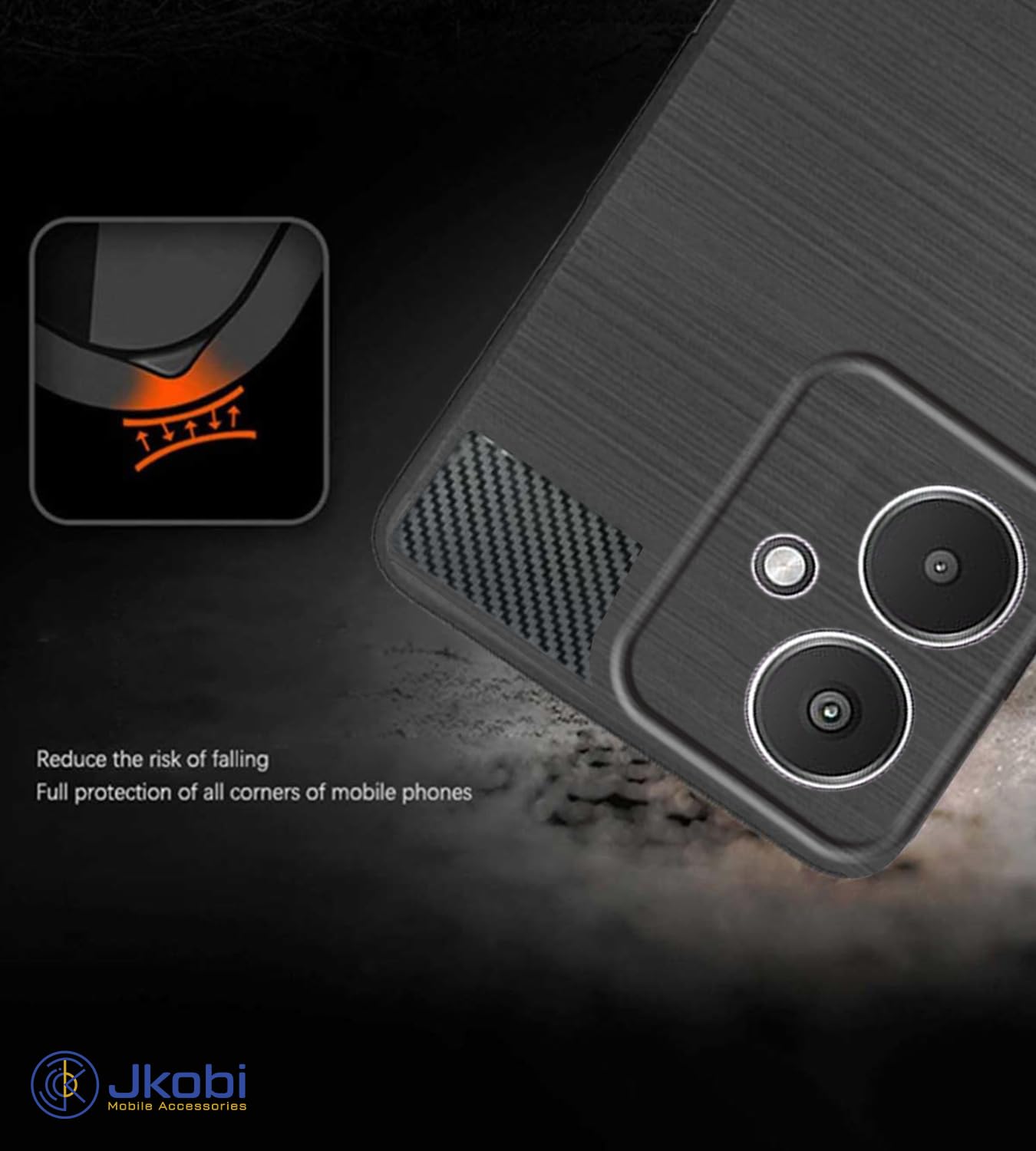 Jkobi Back Cover Case for Redmi 13C 5G (Hybrid Armor Case | Carbon Fiber Shockproof | Soft and Flexible | Black)