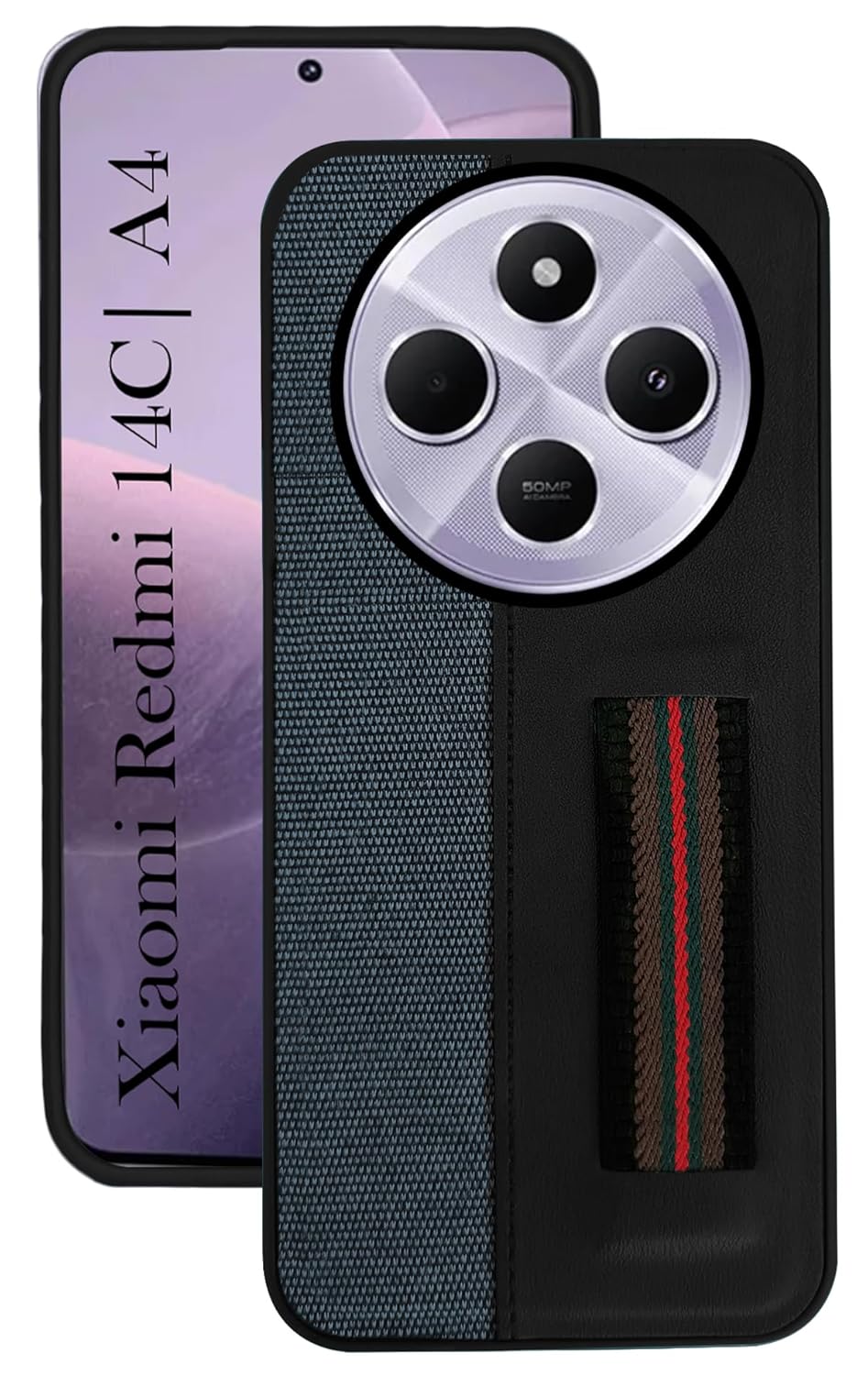 Jkobi Back Cover Case for Redmi A4 5G | Xiaomi Redmi 14C (Professional PU Leather | Strip Chain Holder Socket)