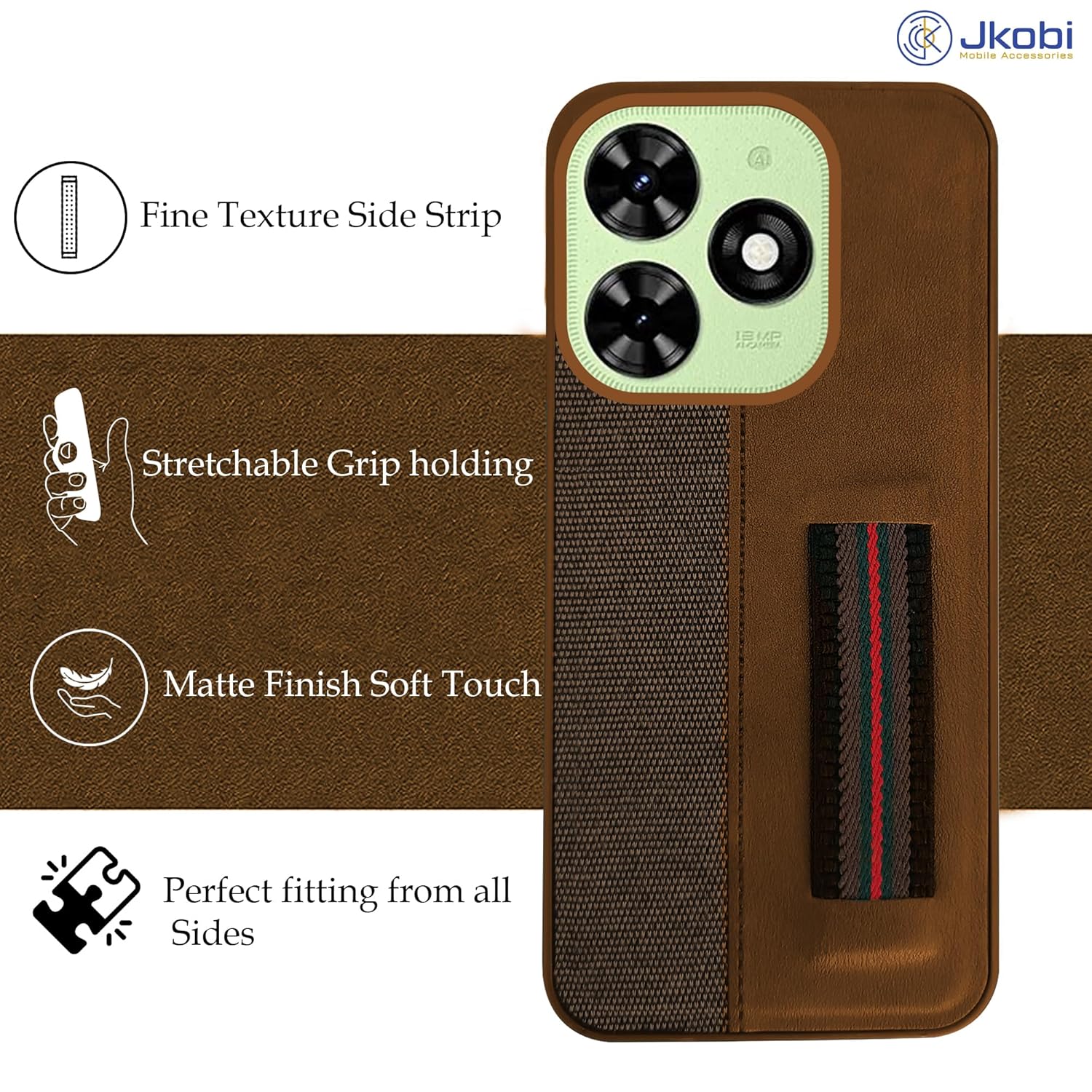 Jkobi Back Cover Case for Tecno Spark Go 2024 (Professional PU Leather | Strip Chain Holder Socket | Brown)