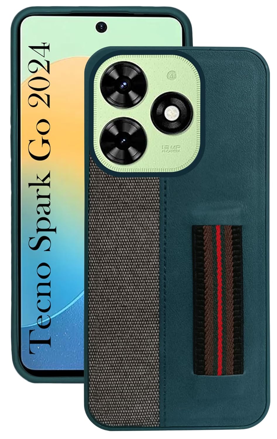 Jkobi Back Cover Case for Tecno Spark Go 2024 (Professional PU Leather | Strip Chain Holder Socket | Green)