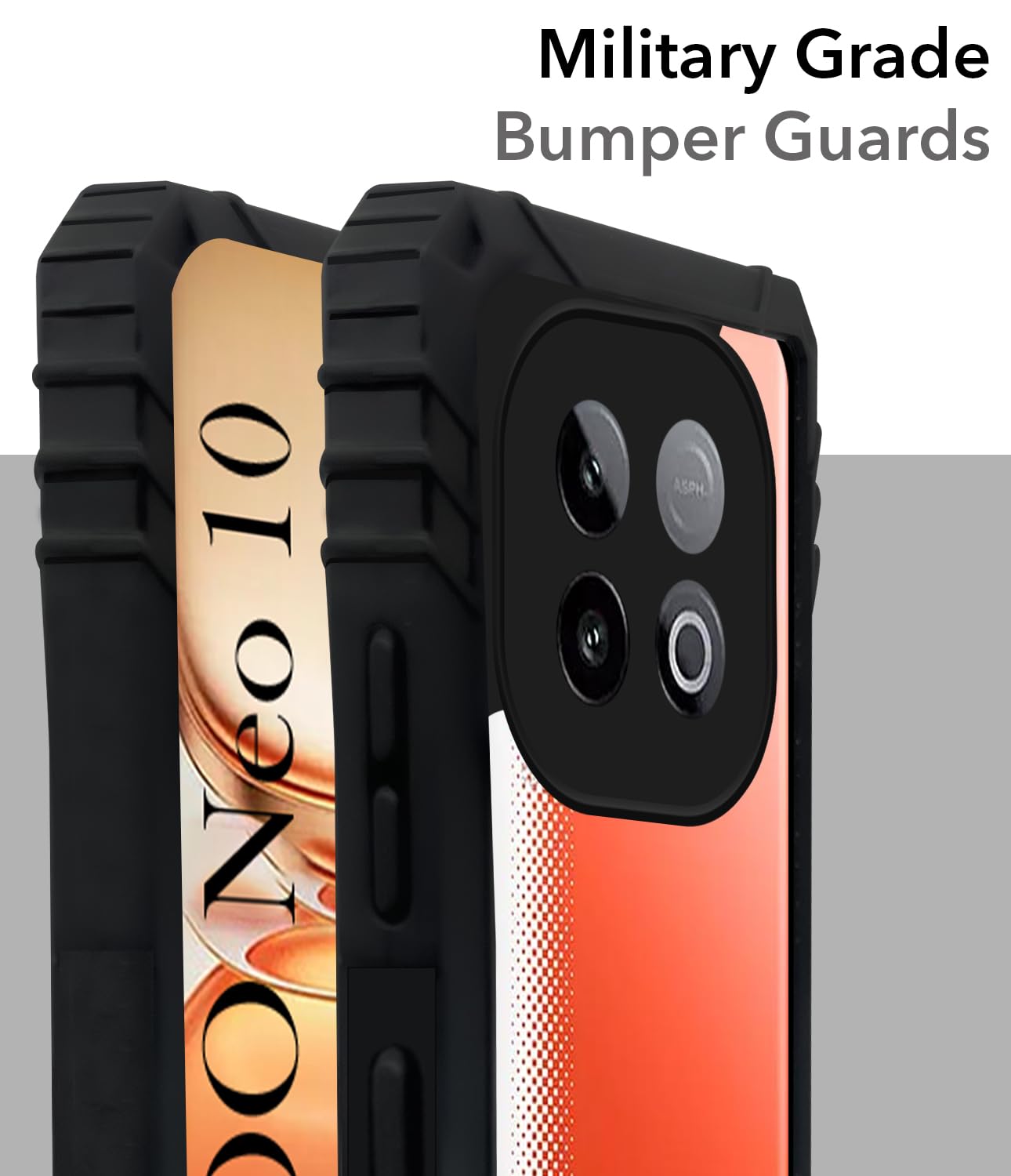 Jkobi Back Cover Case for Vivo iQOO Neo 10 (Ultimate Shockproof Bumpers | Anti Yellow | Rugged Armor | Hybrid PC | Black)