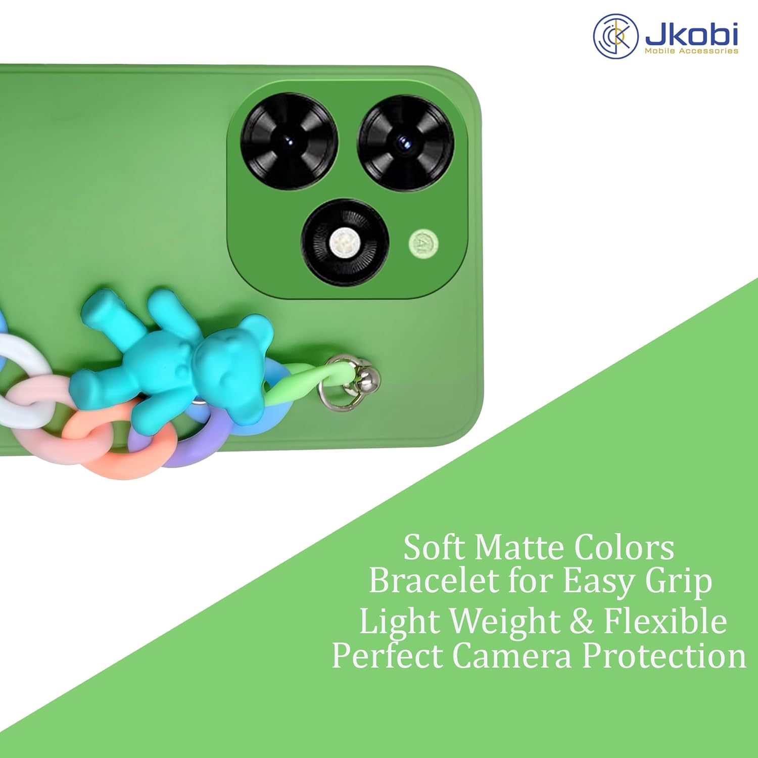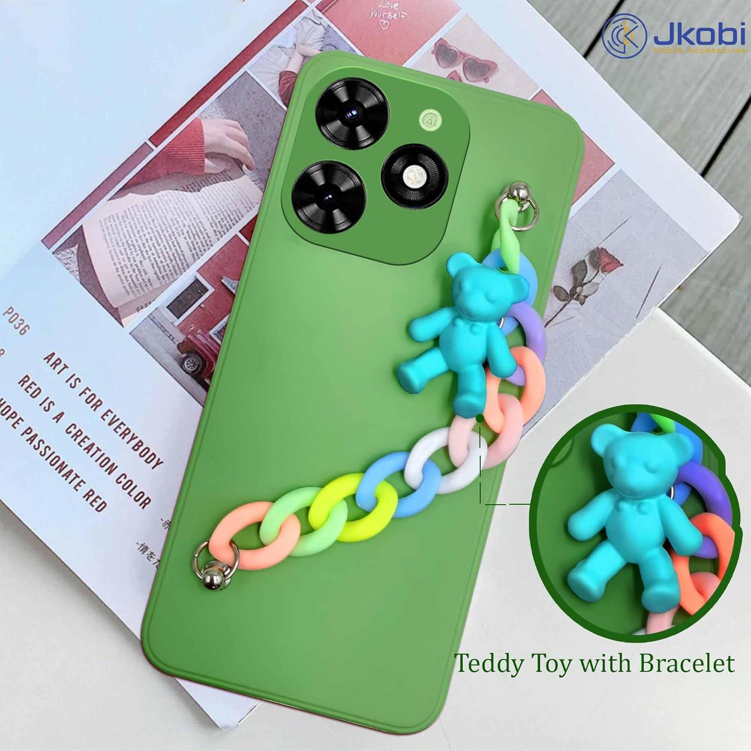 Be the first to review “Jkobi Back Cover for Tecno Spark Go 2024 Girls Case with Bracelet (Wrist Hanging Chain | Teddy Toy Cartoon | Matte Green)” Cancel reply