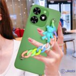 Jkobi Back Cover for Tecno Spark Go 2024 Girls Case with Bracelet (Wrist Hanging Chain | Teddy Toy Cartoon | Matte Green)