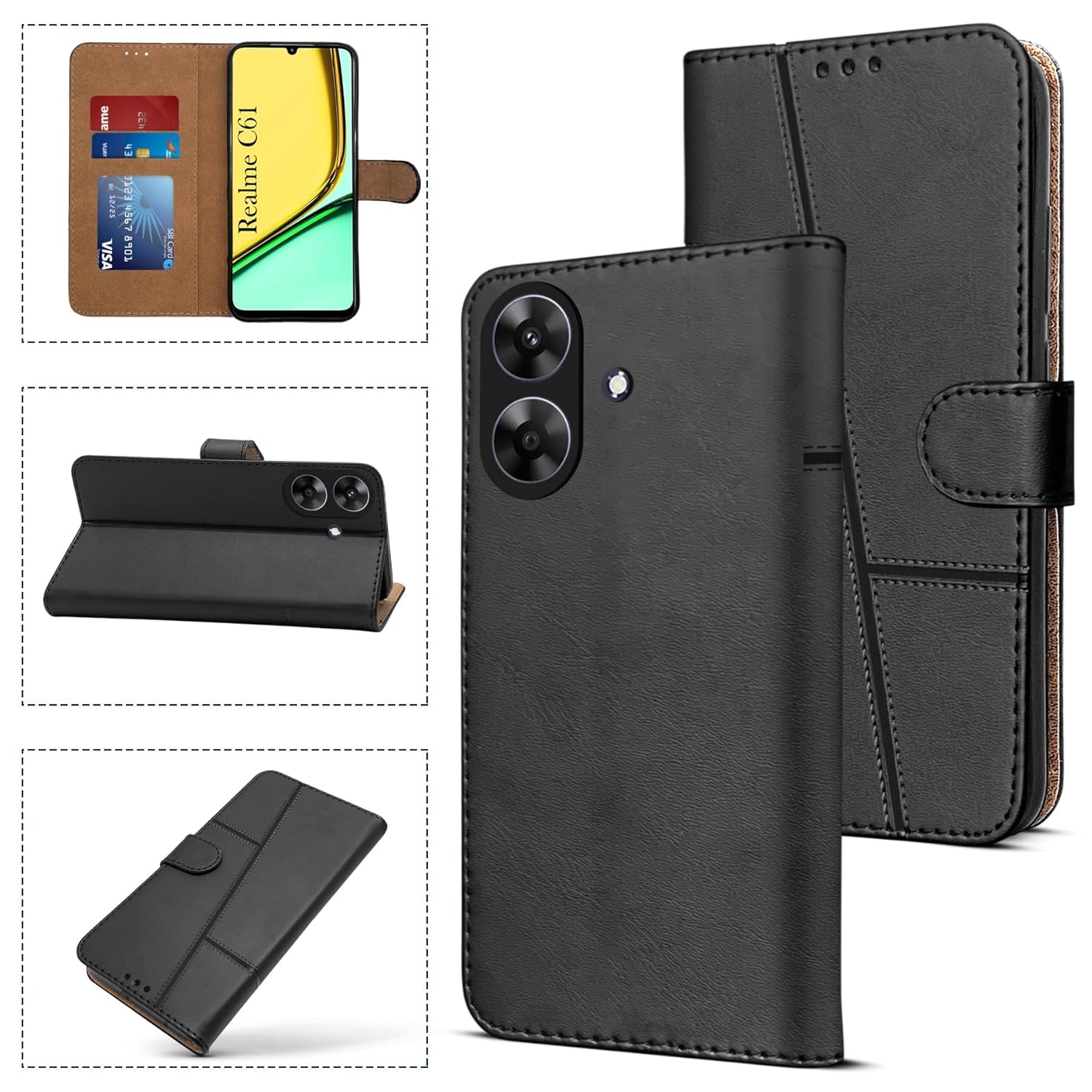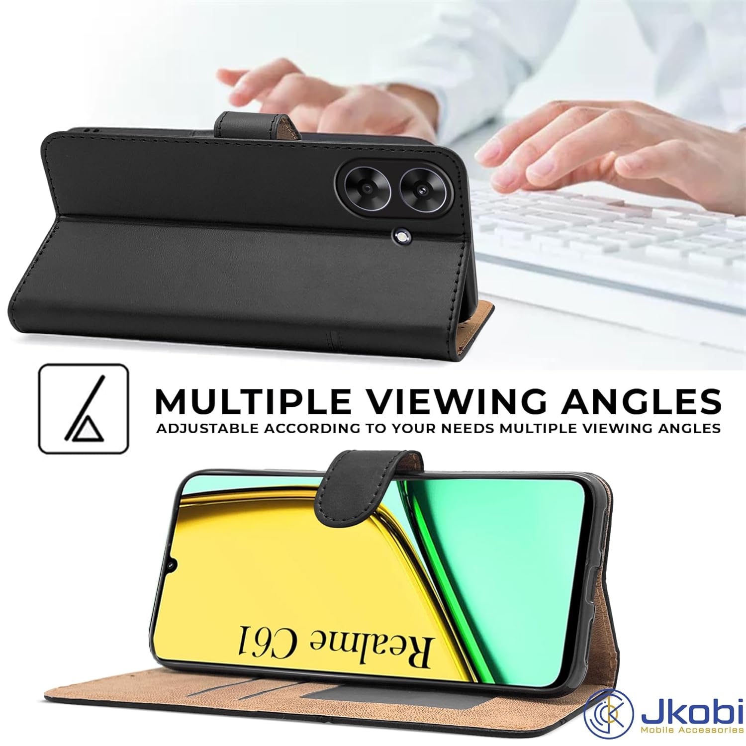 Jkobi Flip Case Cover for Realme C61 | Realme Narzo N61 (Stitched Leather with Magnetic Closure)