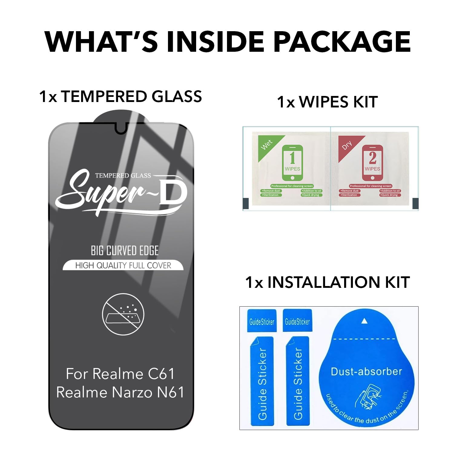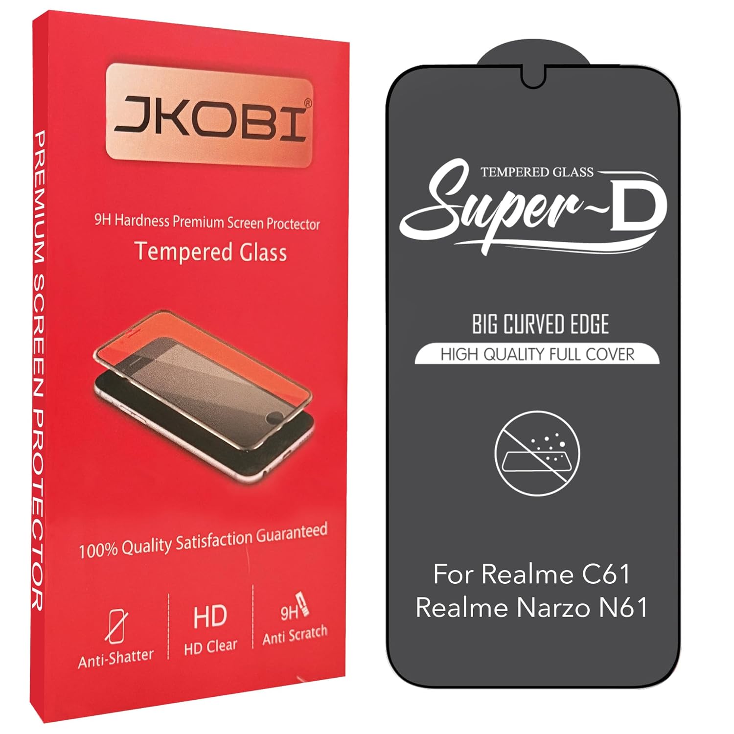 Jkobi Military-Grade Gorilla Tempered Glass Screen Protector for Realme C61 | Realme Narzo N61 With Installation Kit | Shatterproof, Full Coverage, HD Clear, Scratch Resistant (Pack of 1)