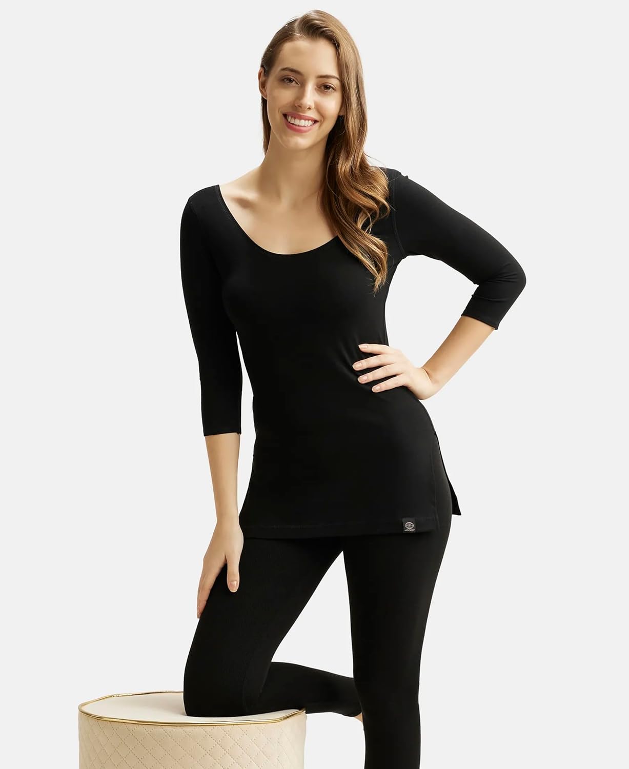 Jockey 2511 Women’s Soft Touch Microfiber Elastane Stretch Three Quarter Sleeve Thermal Top with Stay Warm Technology