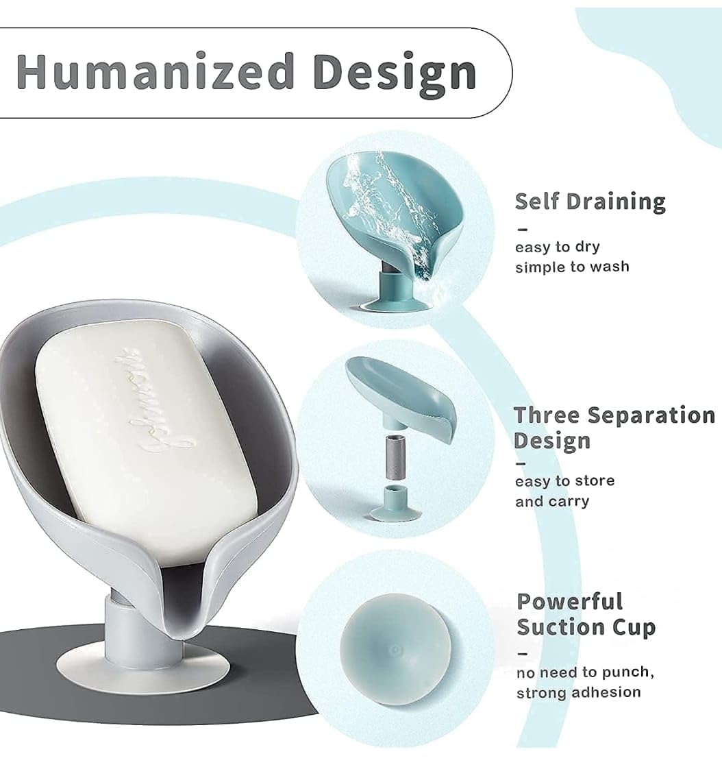 Upgrade your bathroom and kitchen experience with our stylish and practical soap holder for bathroom. This wall-mounted soap dish features a creative leaf shape design that adds a modern touch to your wash area while keeping your soap dry and clean. Designed with self-draining technology, the water flows directly into the sink, preventing soap from getting soggy. Crafted from high-quality plastic, this no drilling soap dish can be easily mounted using a powerful suction cup, ensuring a secure hold on tiles, mirrors, glass, and other smooth surfaces. Say goodbye to messy countertops—this plastic soap box is perfect for your kitchen sink, wash basin, or even shower area. Its multicolor options blend well with any decor, and it also functions as a bathroom organizer, ideal for small items like razors or sponges. Whether you’re looking for a soap box for kitchen sink or a bath accessory for home, this suction soap stand delivers on both function and aesthetics. A perfect addition to modern homes, this soap tray is easy to install, clean, and reposition. Choose smart storage—choose our quick drain soap holder today.