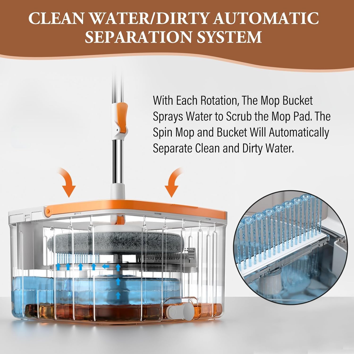 🧹|| SELF-SEPARATING DIRTY FROM CLEAN WATER: The mop and bucket kit has a unique system that separates dirty from clean water. The bucket has a separate compartment for dirty water, which prevents the dirty water from contaminating the clean water.