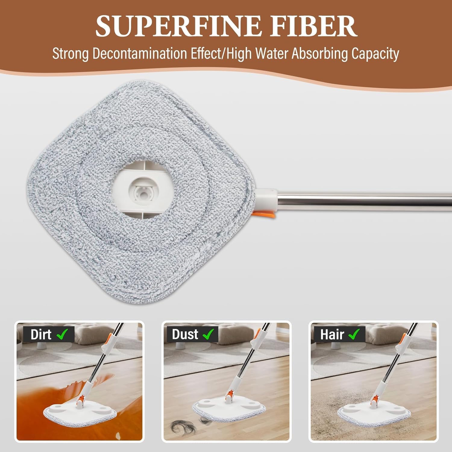 🧹|| 360° ROTATING HEAD: The mop head rotates 360°, allowing you to easily clean hard-to-reach areas under furniture and in corners. The mop head is also self-wringing, ensuring that you always have a dry mop.