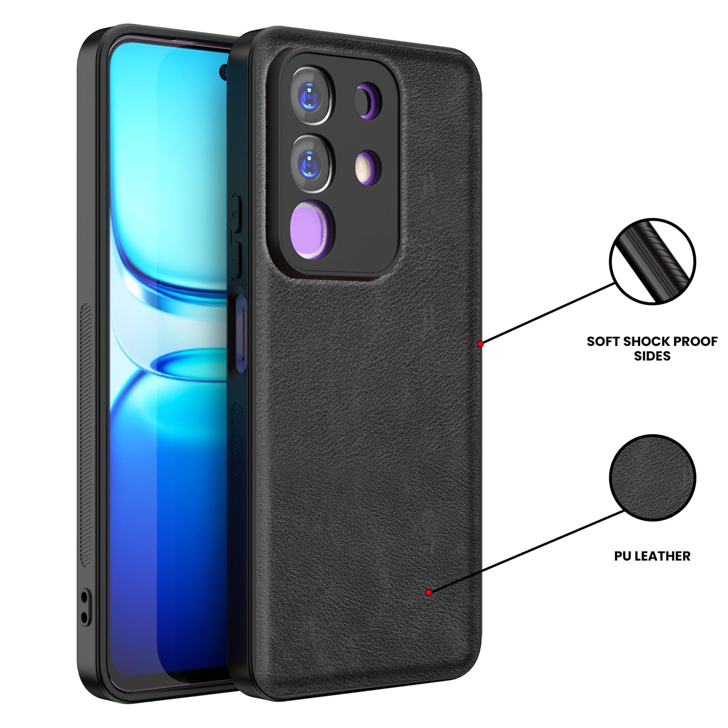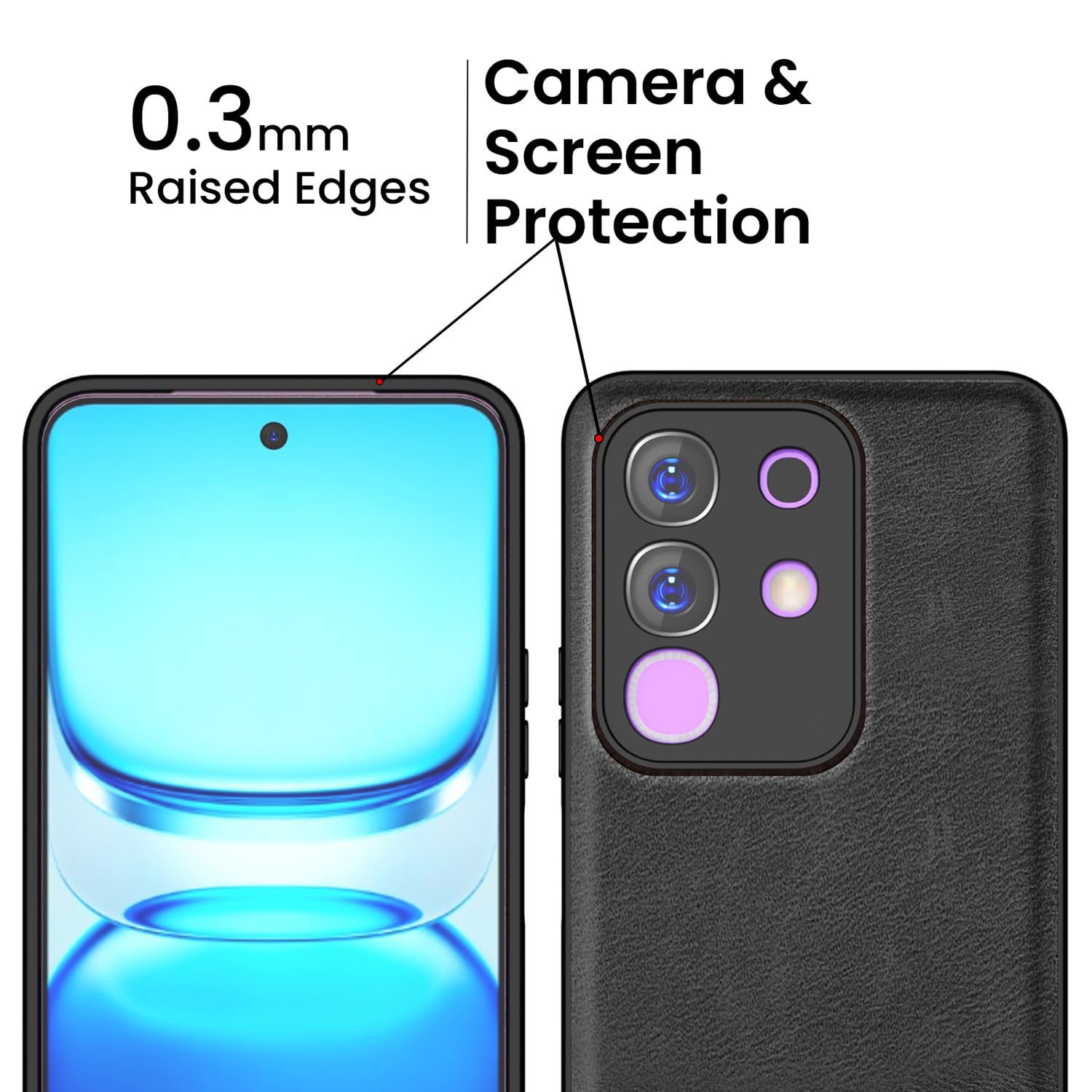Kapa Tux Leather Back Cover for Iqoo Z10x 5G / Vivo T4x 5G | Slim Shockproof Camera Protection Bumper Case (Black)
