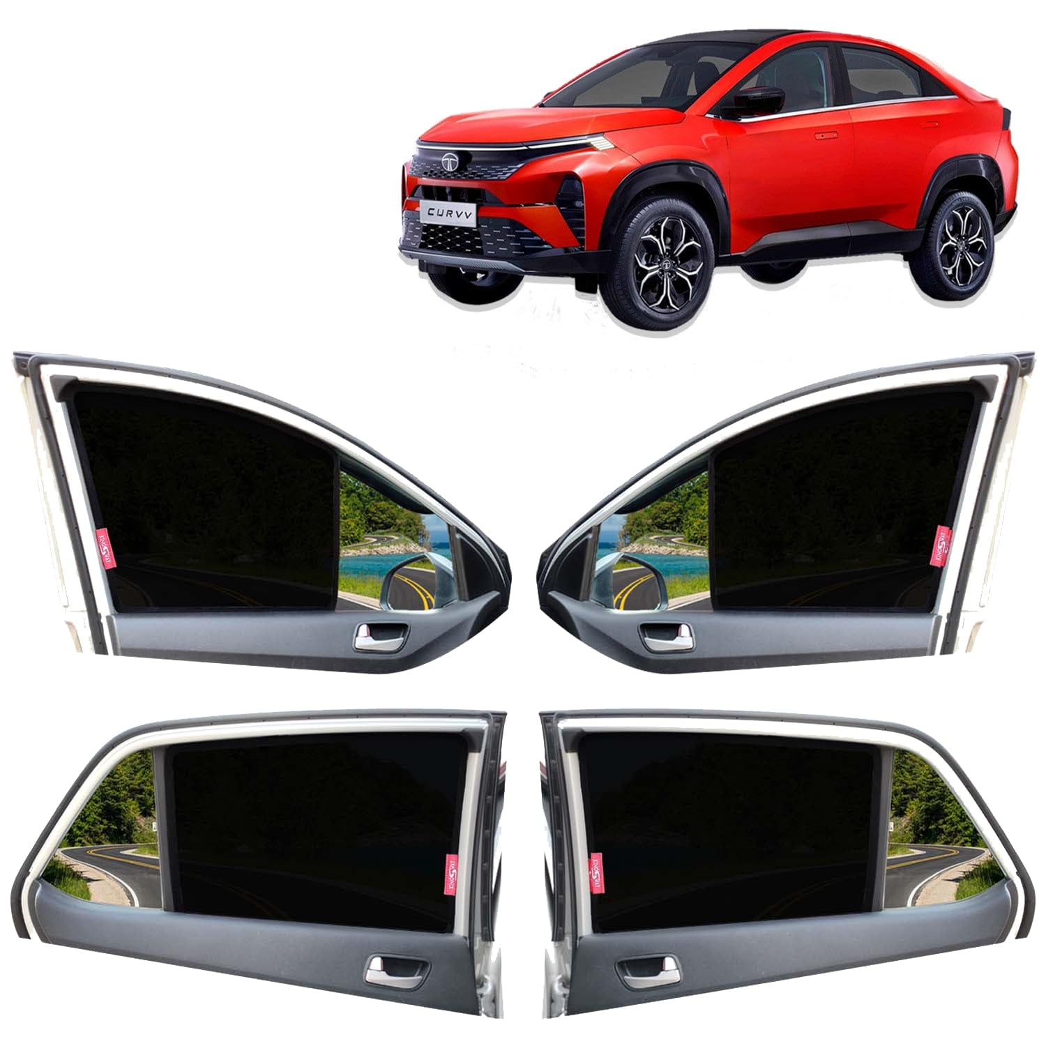 KINGSWAY Accessories Car Sun Shade Z-Black Non Magnetic Fix Type Curtains Only Compatible with Tata Curvv Year 2024 Onwards All Model, Only Half Cut in Front Window, Car Curtains, Pack of 4 Pcs