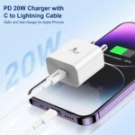 [20W Fast Charging Adapter] This charger is equipped with a 20W PD Charger 3.0 USB Type-C power delivery wall plug. With PD 3.0 Quick-Charge, the USB-C port provides a maximum 20W output power, allowing you to charge your device up to 3x faster.Includes a USB-C to Lightning cable for fast charging.