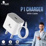 Kratos 20W Original Charger with Lightning Cable Compatible with iPhone14/13/12/11/10/9/8/7/X/Xr Series, Cable Length 1.2 Mtr, White