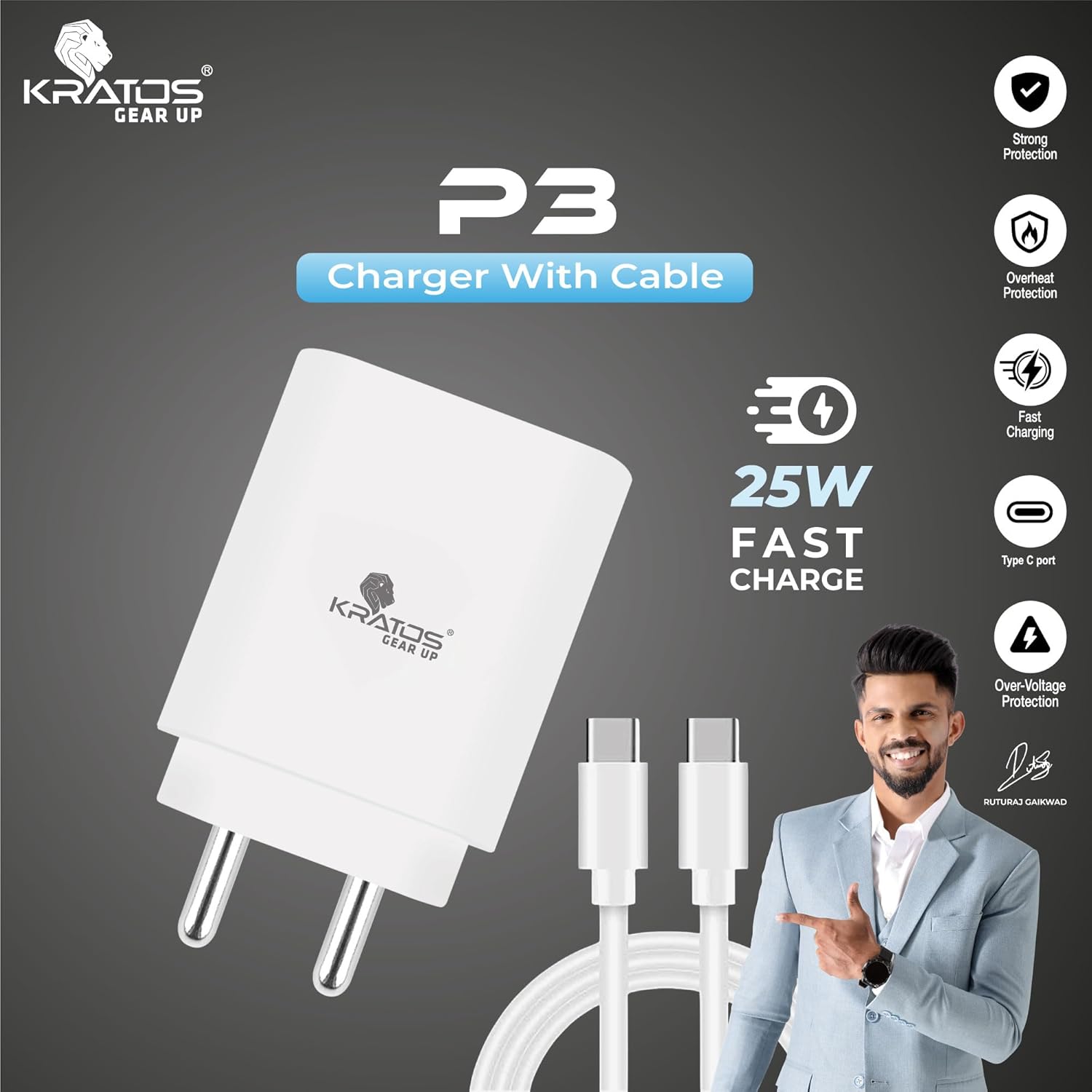 Kratos 25W Charger Adapter with Type C to C Cable, Fast Charger Compatible with Samsung Galaxy A15/M35/A35/A55/M05/M15/F15/M55| M34/M14/F34/F14/F54/A14/S24/S23/S21 Fe/S23/ Fold/Flip/6/5/4/3/Tab, White