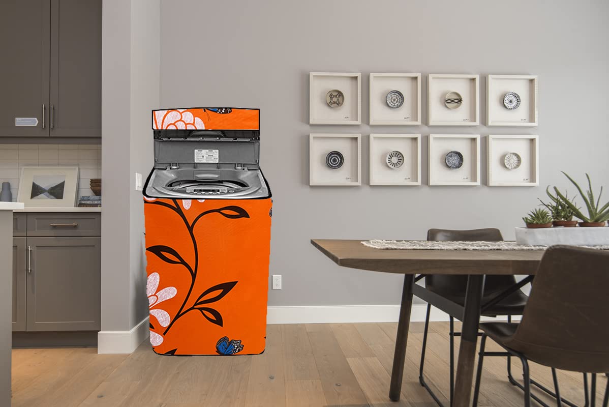 The Furnishing Tree Washing Machine Cover Floral Pattern Red Base Compatible for Whirlpool 7 Kg Fully-Automatic Top Loading Whitemagic Royal Genx
