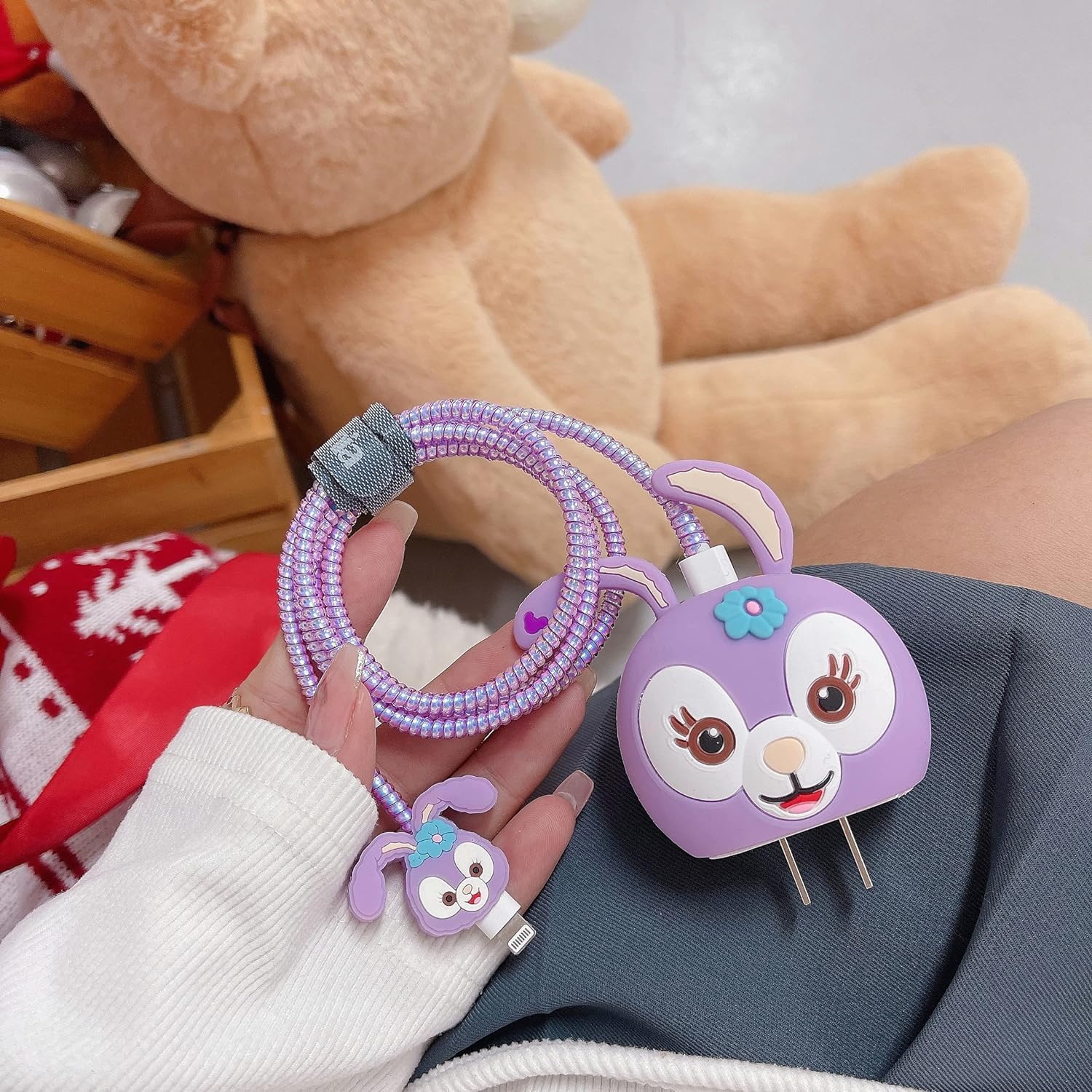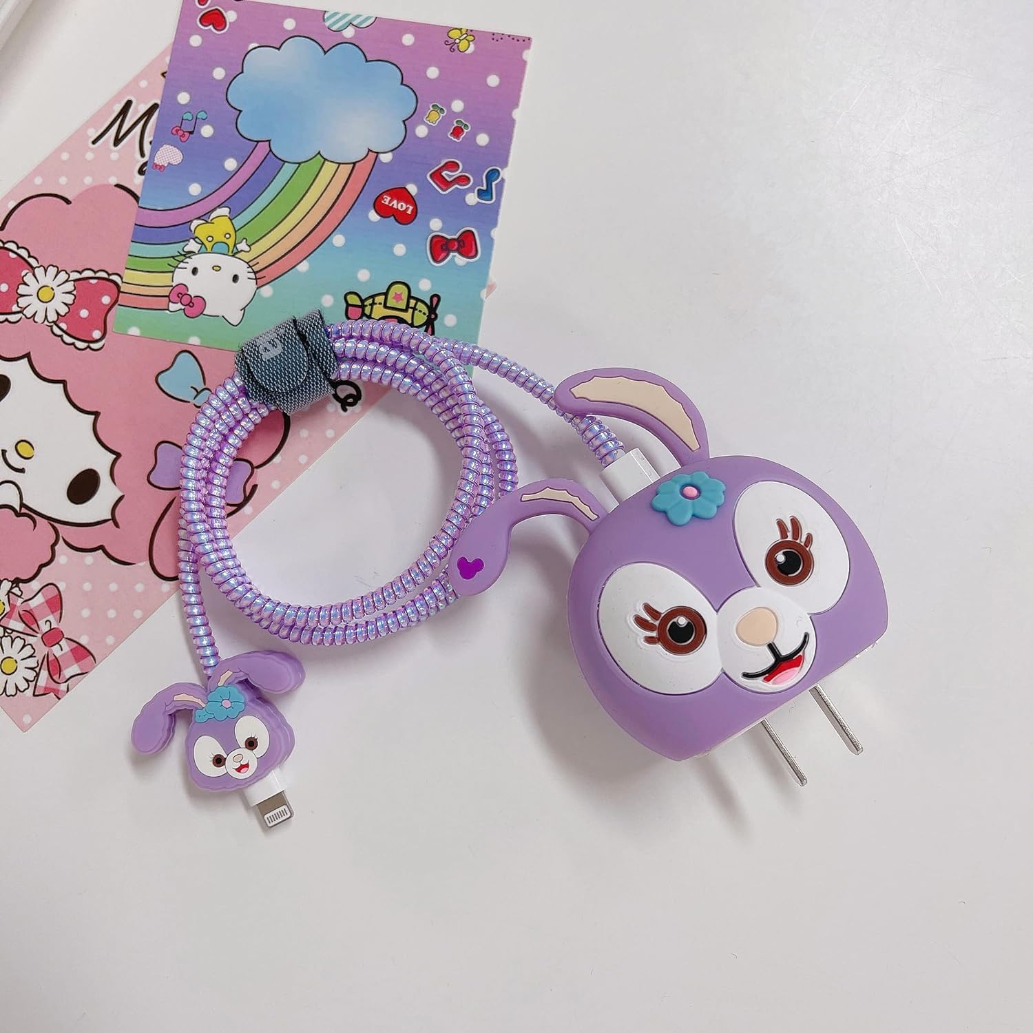 LATALI Cartoon 3D Design Protective Case Compatible with Apple 18W – 20W USB-C Power Adapter Charger, Protective Cover for iPhone 18W & 20W Power Adapter Charger with Wire Saver. (Stelalou-Rabbit)