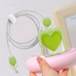 LATALI Cute 3D Design Protective Case Compatible with Apple 18W – 20W USB-C Power Adapter Charger, Protective Cover for iPhone 18W & 20W Power Adapter Charger with Wire Saver. (Green Heart)