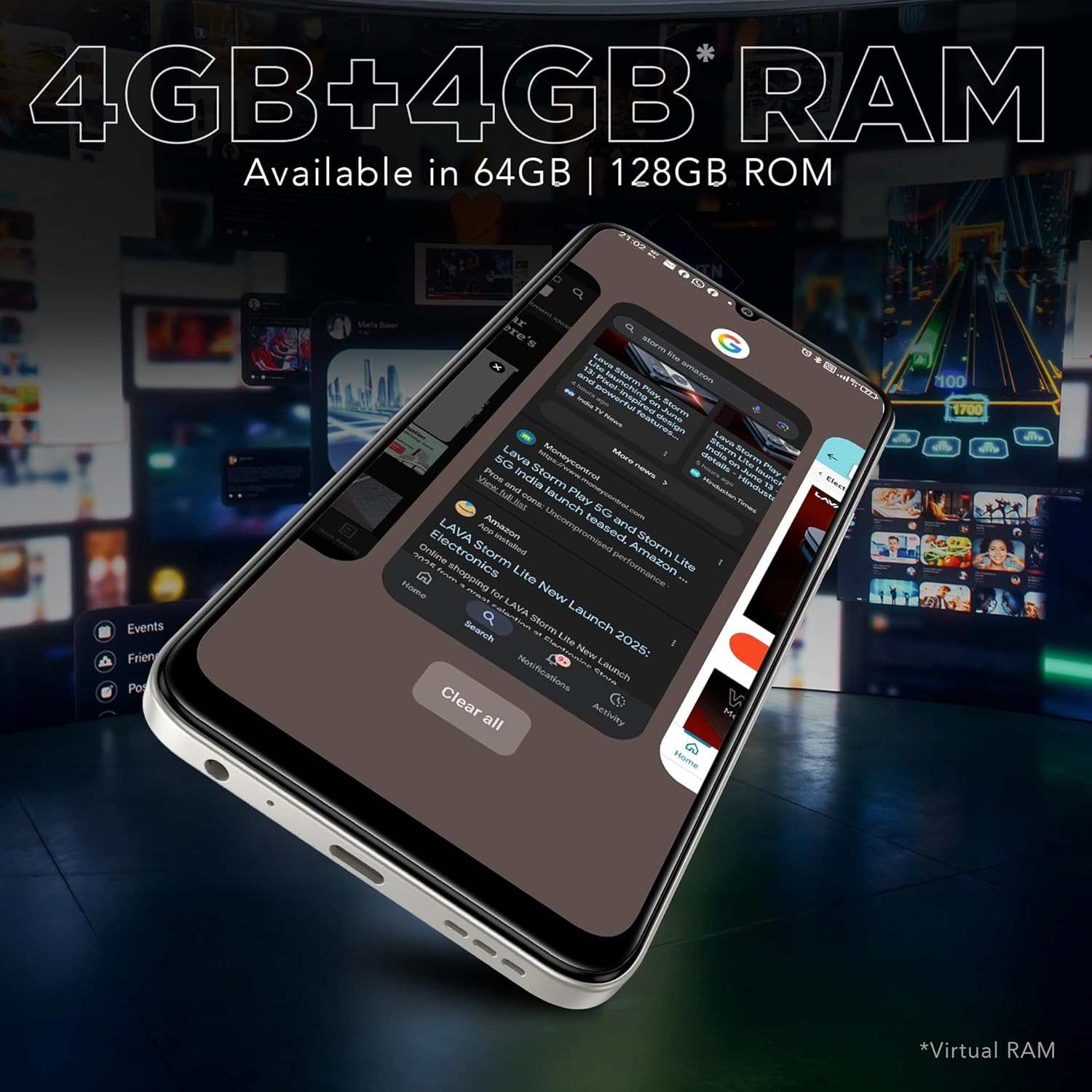 Lava Storm Lite 5G (Cosmic Titanium, 4+4*GB RAM, 128GB Storage) | India’s First MTK Dimensity 6400 Processor | 50MP AI Camera | IP64 Rated | 120 Hz Display | 5000 mAh Battery | Supports All 5G Bands