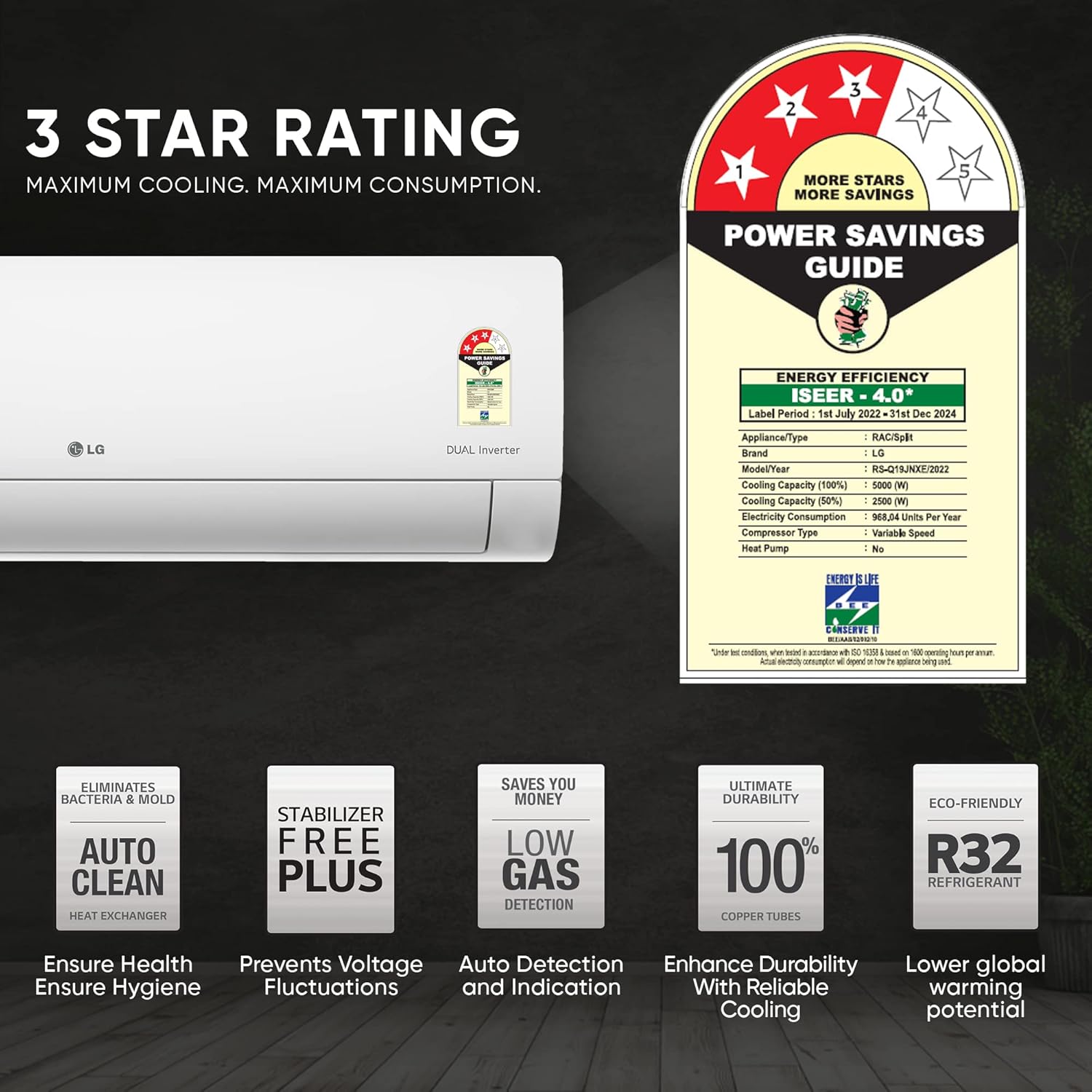 Energy Rating : 3 Star – Energy efficiency | Annual Energy Consumption: 968.04 Units Per Year| ISEER Value: 4.0 (Please Refer Energy Label On Product Page Or Contact Brand For More Details)