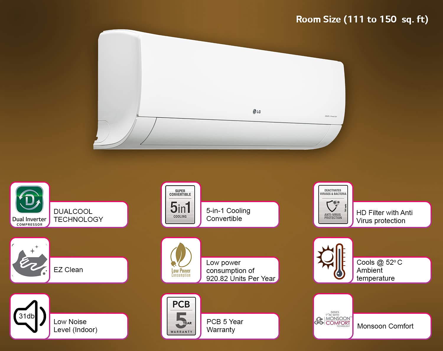 Key Features: DUAL Inverter Compressor, Super Convertible 5-in-1 Cooling, HD Filter with Anti-Virus protection, 100% Copper Tubes with Ocean Black Protection, Ocean Black Fin, Cools @ 52°C