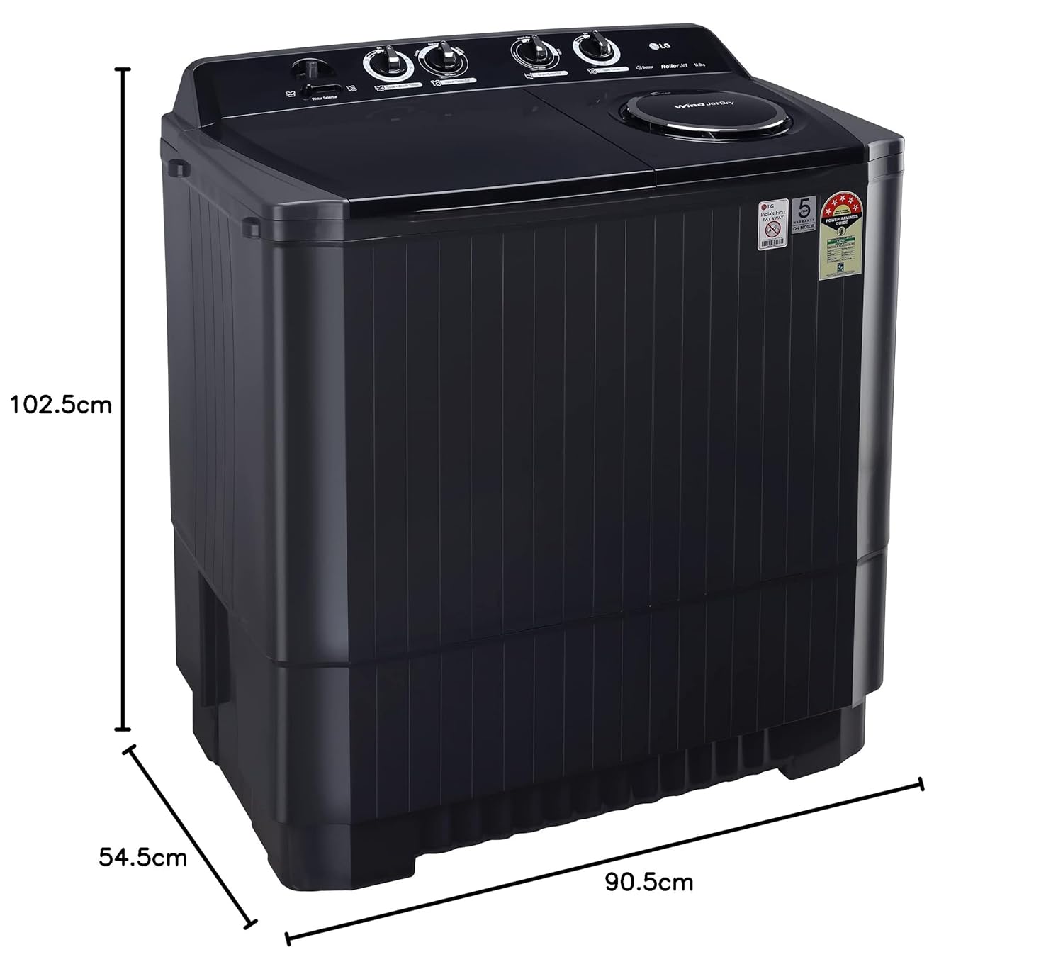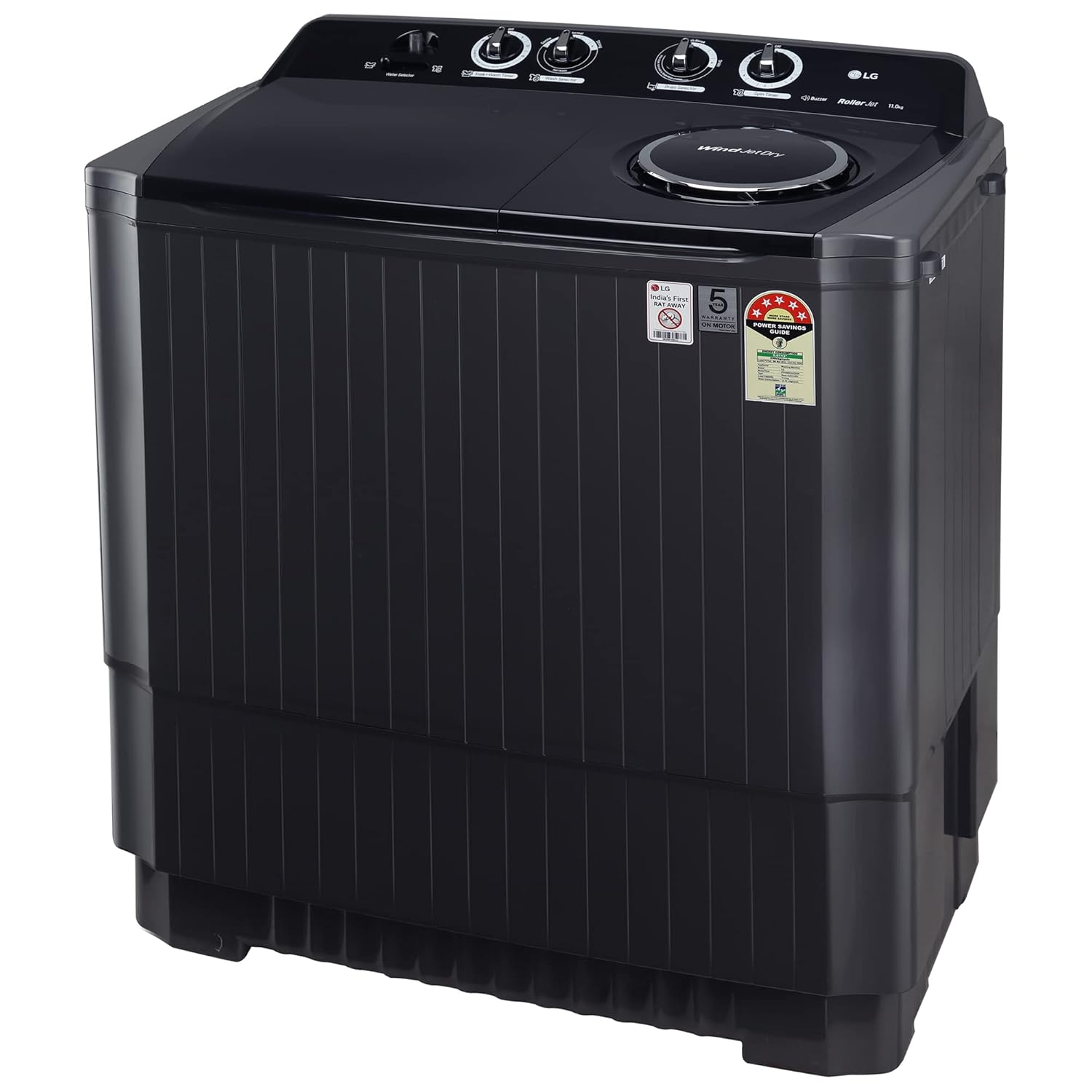LG 11 Kg 5 Star Wind Jet Dry Rat Away Technology Semi-Automatic Top Loading Washing Machine (P1155SKAZ, Roller Jet Pulsator, Punch + 3, Middle Black)
