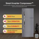 LG Exclusive Features: Door Cooling+ – makes inside temperature more even and cools the refrigerator 35% faster; Smart diagnosis- is a fast and easy way to troubleshoot issues; Smart Connect- helps connect your LG double door refrigerator to home inverter; Deodorizer – eliminate unpleasant odors; Easy Slide Shelf