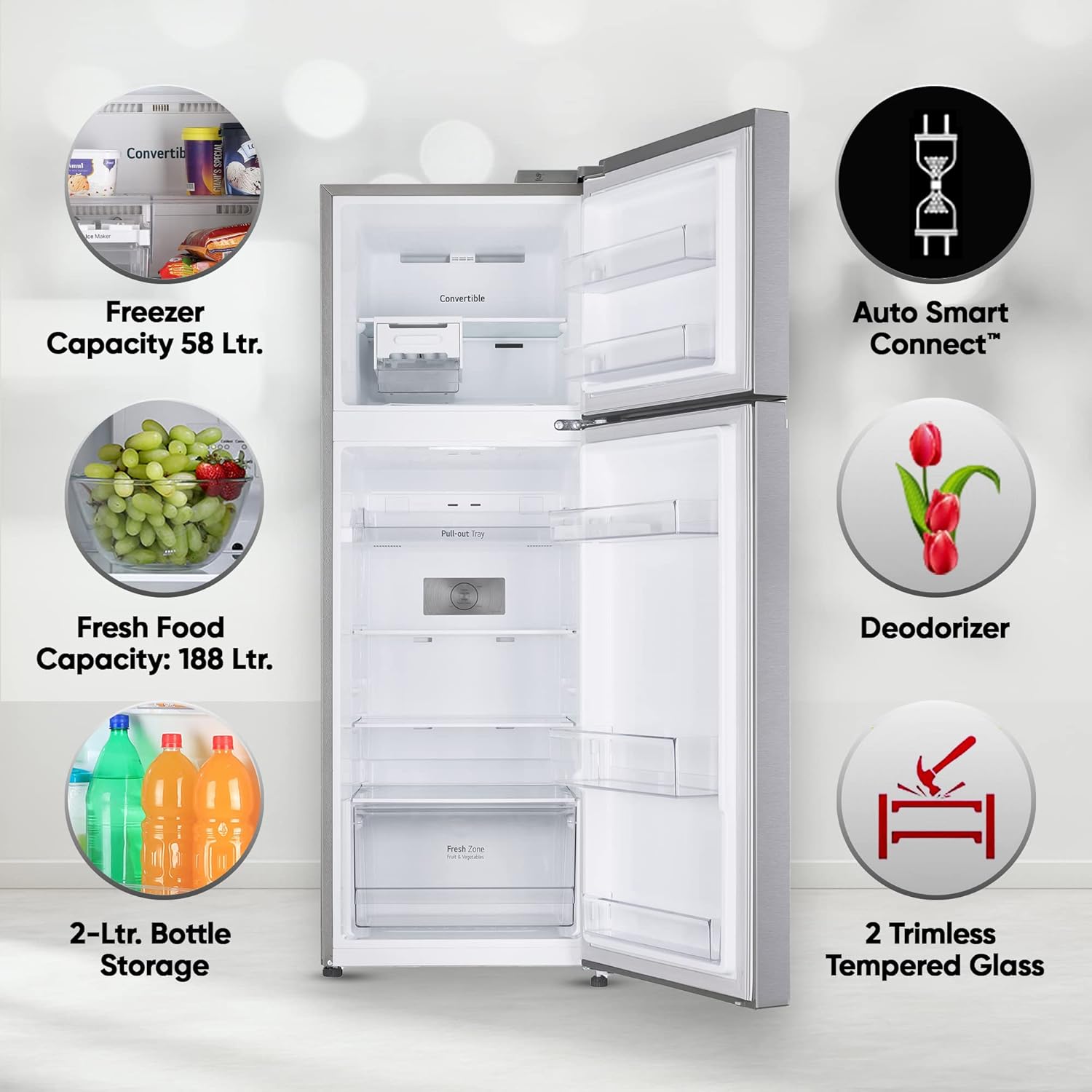 LG 246 L 3 Star Smart Inverter Frost-Free Double Door Refrigerator Appliance (2023 Model, GL-S262SDSX, Dazzle Steel, Convertible)