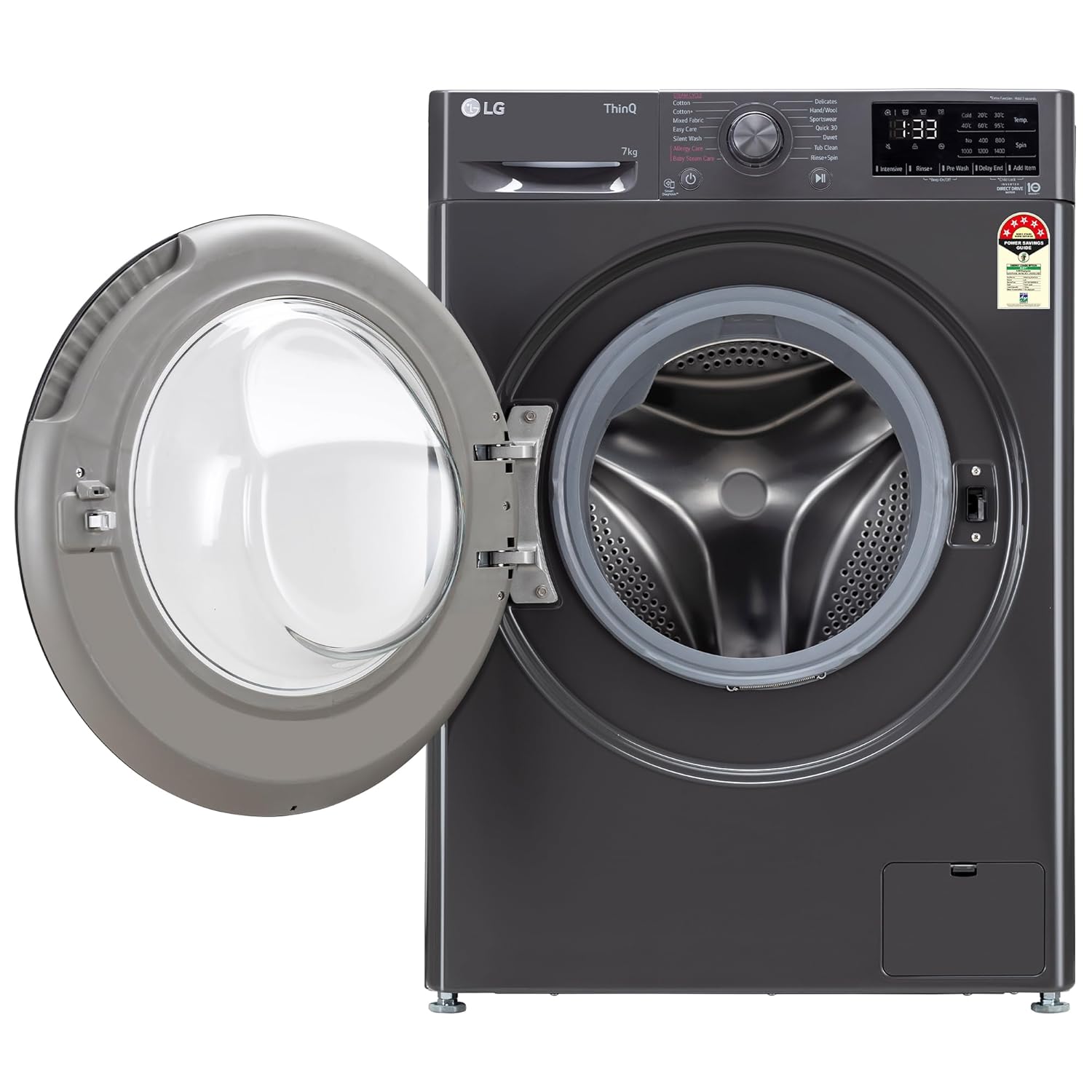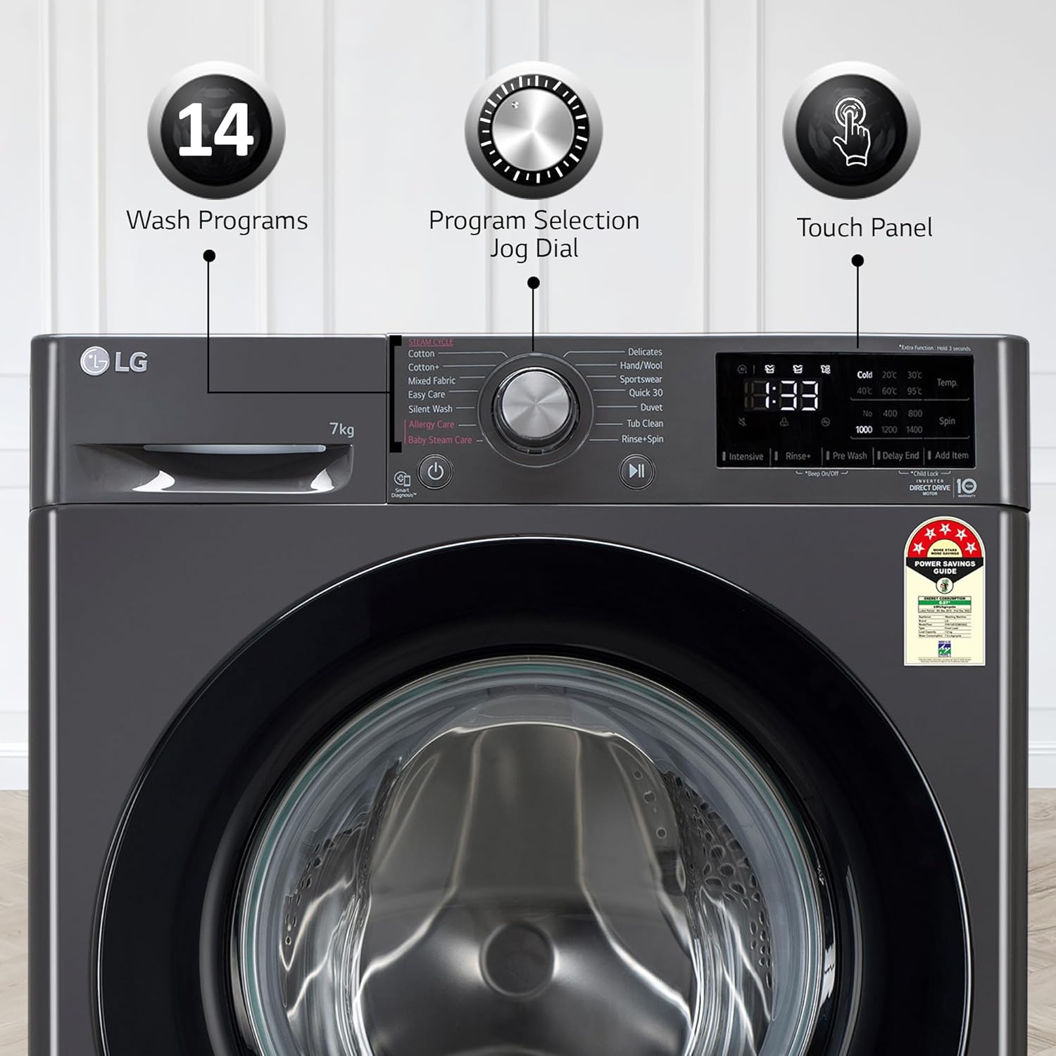 14 Wash Programs – Cotton: Soiled cotton clothes, Cotton+: optimized washing performance for large amount of laundry, Mixed Fabric, Easy Care, Silent Wash, Allergy Care: helps to remove allergens such as house mines pollen and cat fur, Baby Steam Care: Best way to Deep Clean your Baby Clothes, Delicates, Hand / Wool, Sportswear, Quick 30, Duvet, Tub Clean, Rinse+Spin